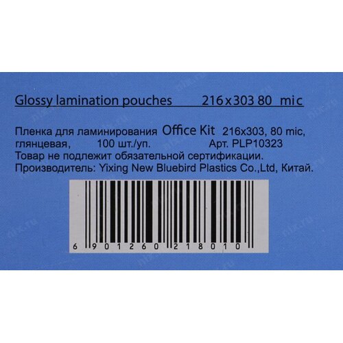 Пленка для ламинирования Office Kit Пленка PLP10323/ LPA4-80 (216х303, 80 мик, 100 шт.)