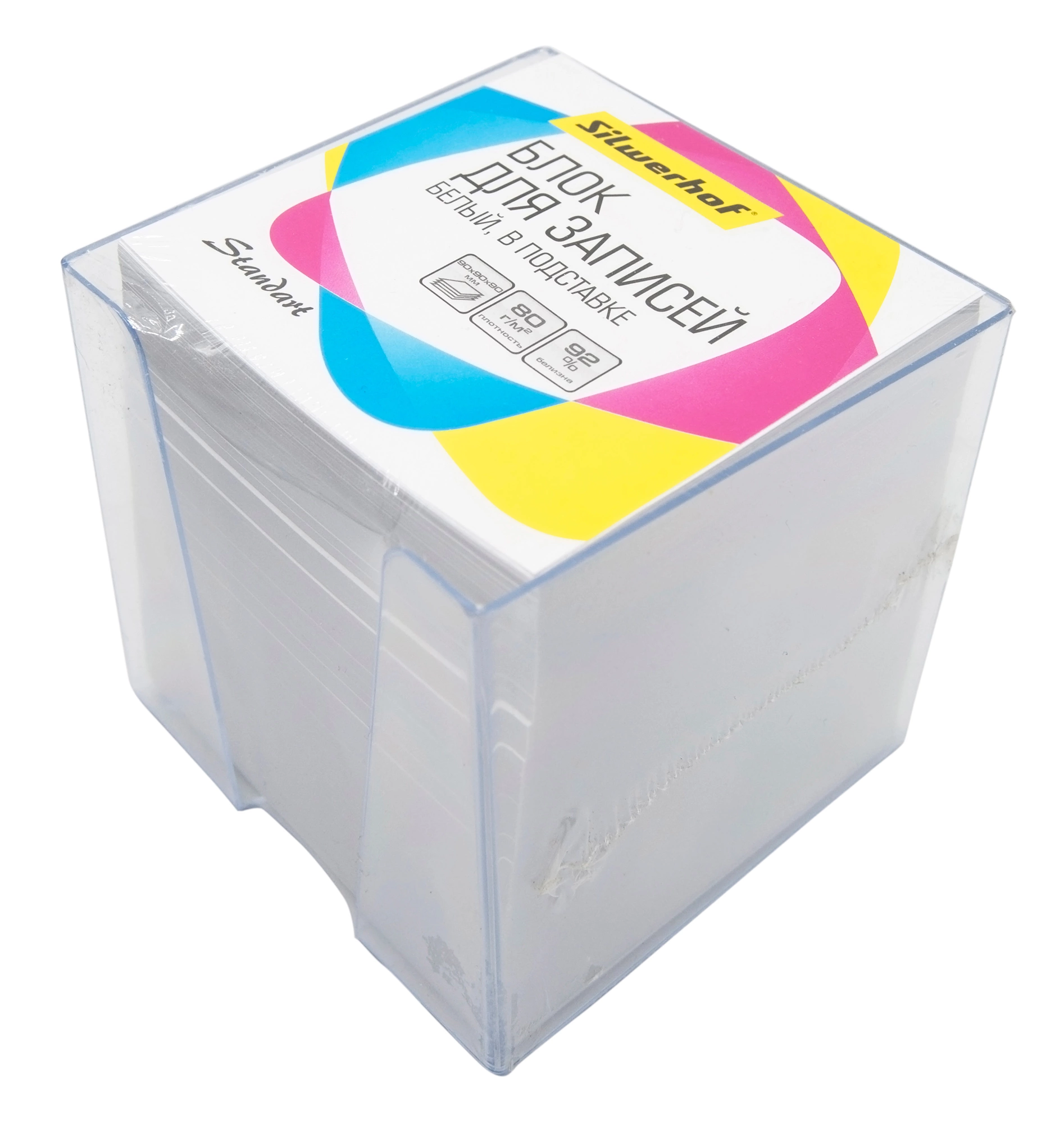 Блок для записей бумажный Silwerhof Стандарт 701022 90x90x90мм 80г/м2 92% белый в подставке (продается кратно 12 шт.)