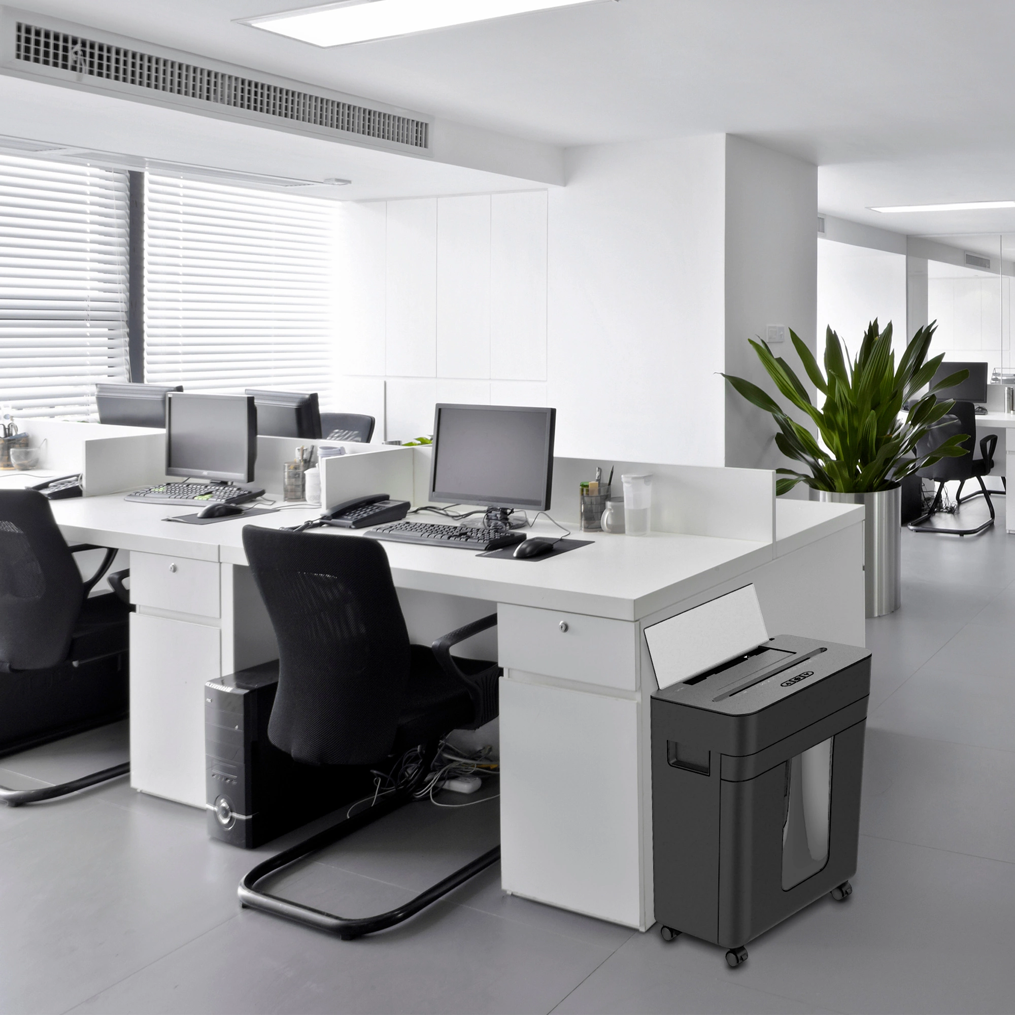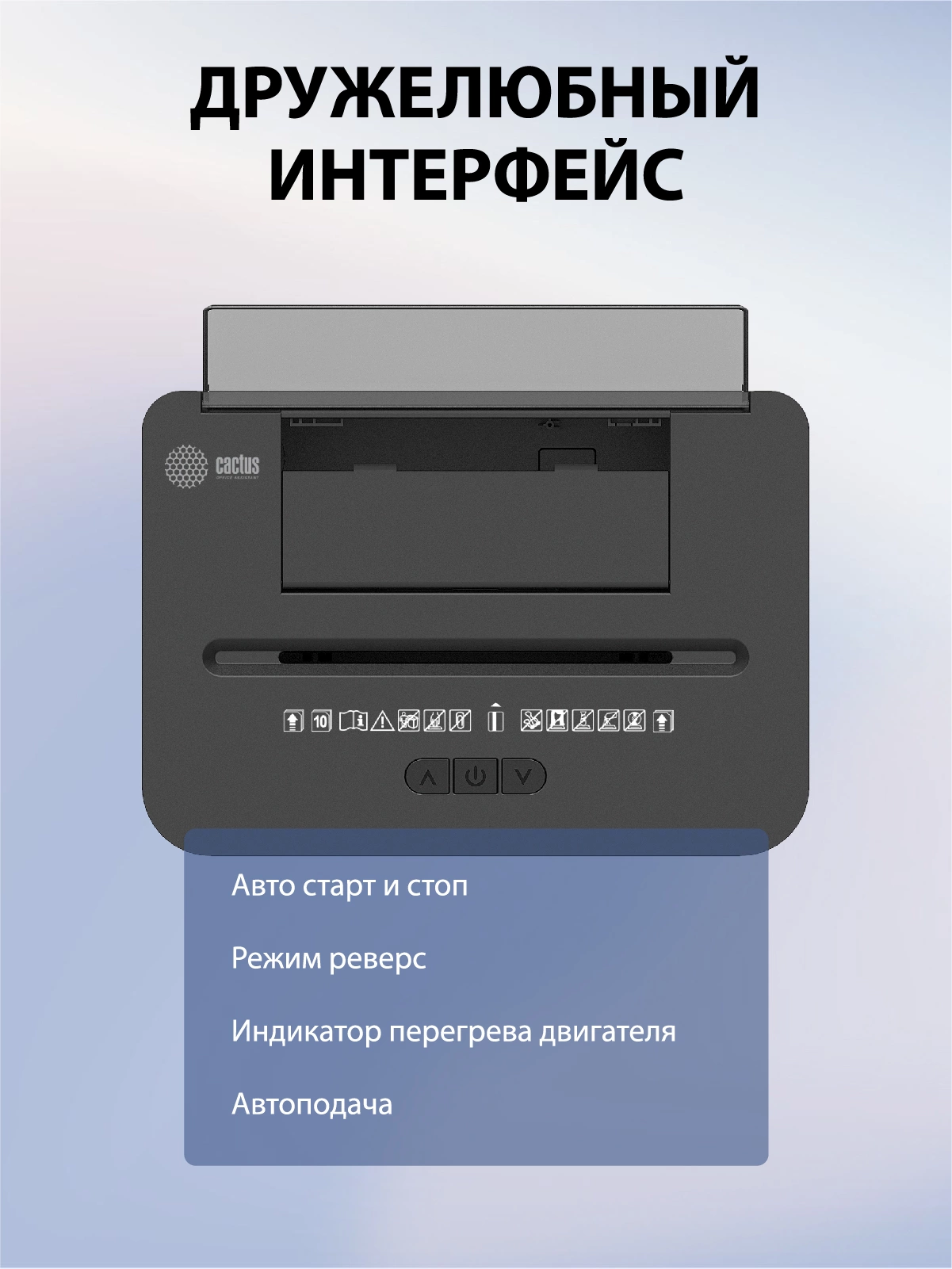 Шредер Cactus CS-SH-D8 черный с автоподачей (секр.P-4) фрагменты 150лист. 24лтр. скобы пл.карты (2077373)