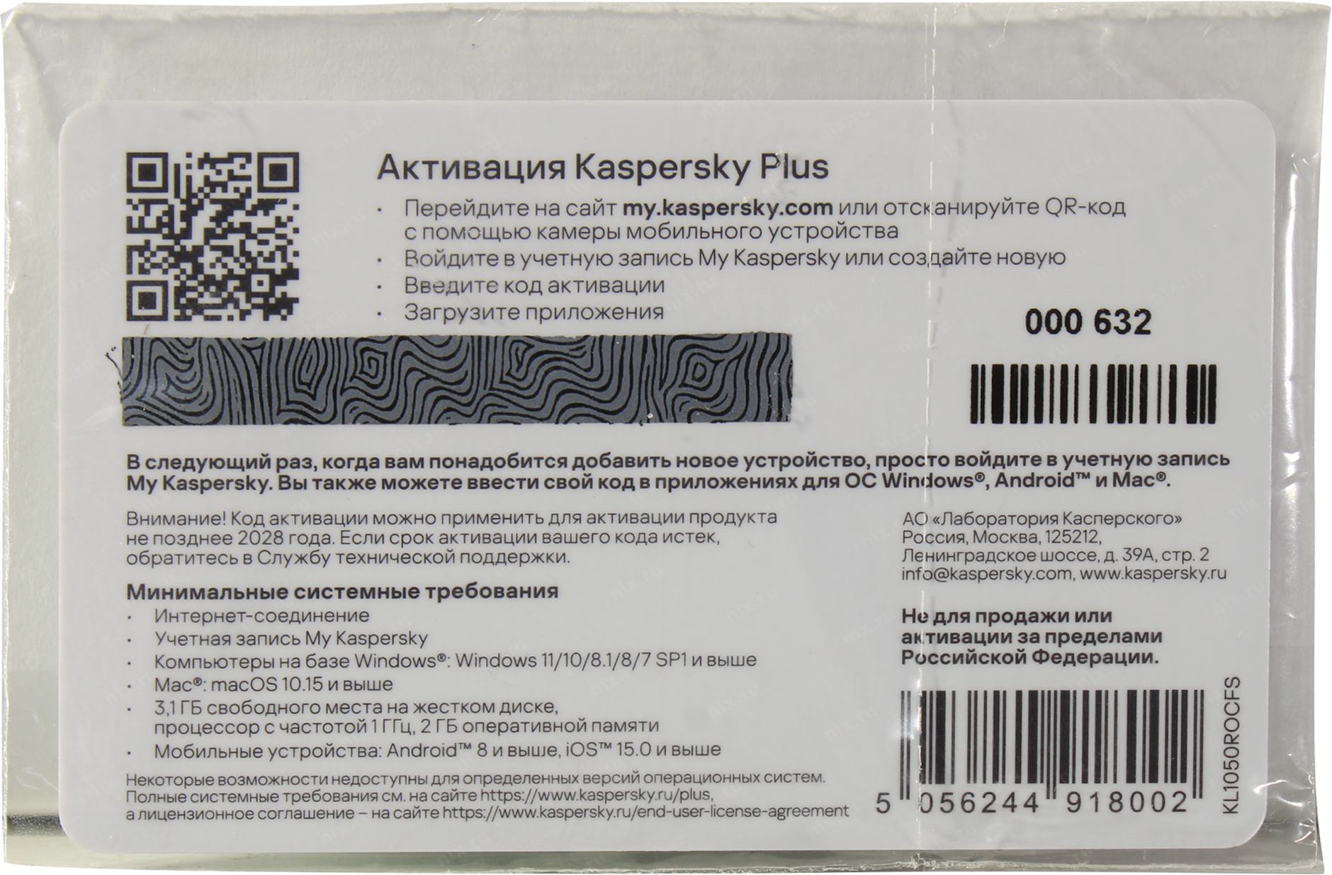 Программное обеспечение KL1050ROCFS Kaspersky Plus + Who Calls. 3-Device 1 year Base Card (1917564/918002)
