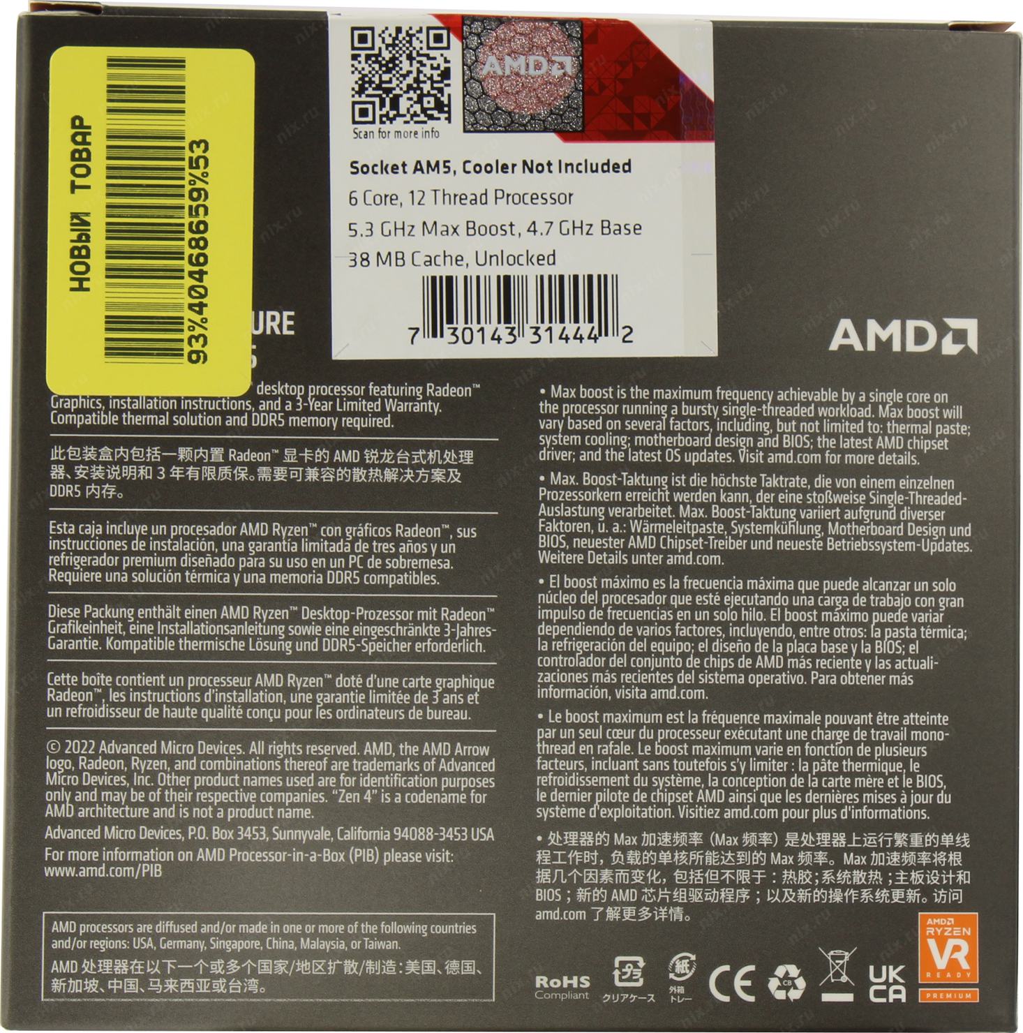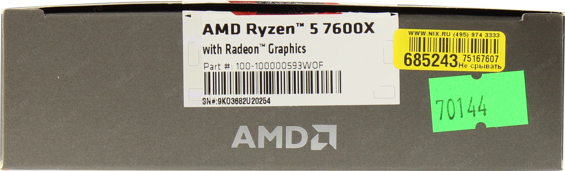 Центральный Процессор AMD RYZEN 5 7600X BOX (Raphael, 5nm, C6/T12, Base 4,70GHz, Turbo 5,30GHz, RDNA 2 Graphics, L3 32Mb, TDP 105W, w/o cooler, SAM5) 100-100000593WOF