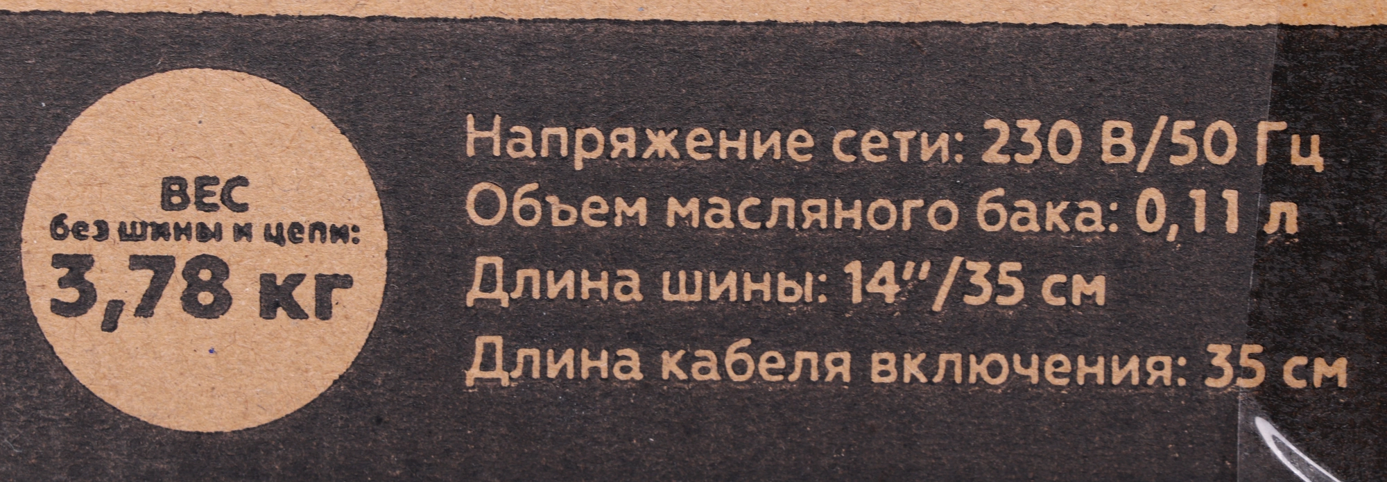 Пила цепная электрическая, шина Champion 14" -3/ 8-1.3-52, цепь Champion 3/ 8-1.3мм-52, чехол для шины Champion 14" , ключ-отвертка для установки шины и цепи, руководство по эксплуатации, упаковка.