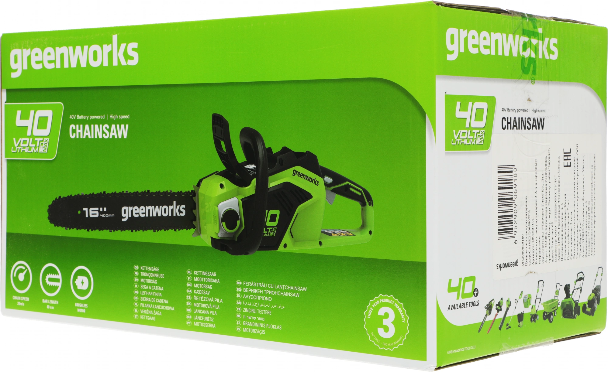 Пила цепная аккумуляторная GREENWORKS GD40CS18 - полупрофессиональная цепная пила, которая отлично подойдет для полноценного ведения дачного хозяйства. Ее надежный бесщеточный двигатель сопоставим по мощности с бензиновыми аналогами на 1, 8 л/ сил.