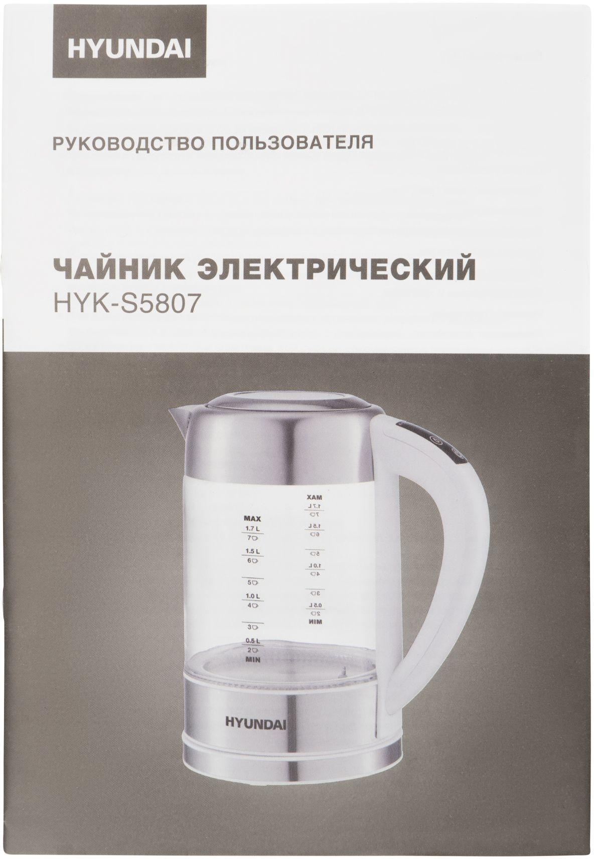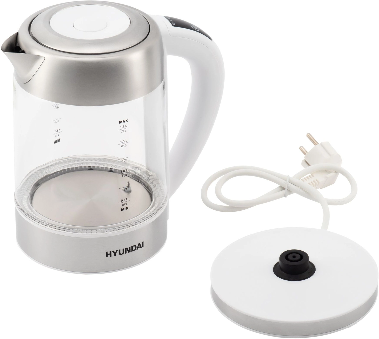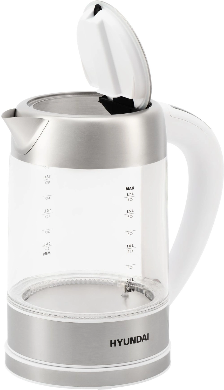 Чайник электрический Hyundai HYK-S5807 1.7л. 2200Вт белый/ серебристый корпус: стекло/ металл