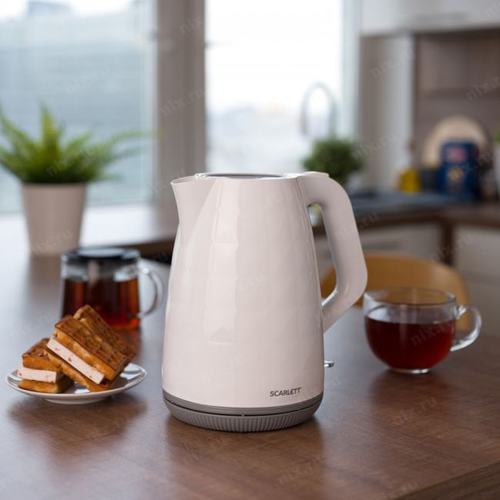 Электрический чайник SC-EK18P49 с оптимальным объемом 1, 7 л оснащён удобной шкалой для контроля уровня воды. Эргономичная ручка, автоматическая система открытия крышки, закрытый нагревательный элемент ? сделают эксплуатацию прибора еще проще и комфортнее. Safe Work ? автоотключение при закипании, защита от включения без воды обеспечат безопасное использование прибора. Уникальный дизайн и белое цветовое решение позволит прибору с лёгкостью вписаться в любой интерьер.