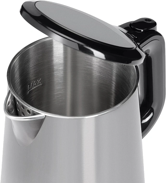 двойные стенки, кнопка открытия крышки, отсек для шнура, подставка 360, фильтр от накипи