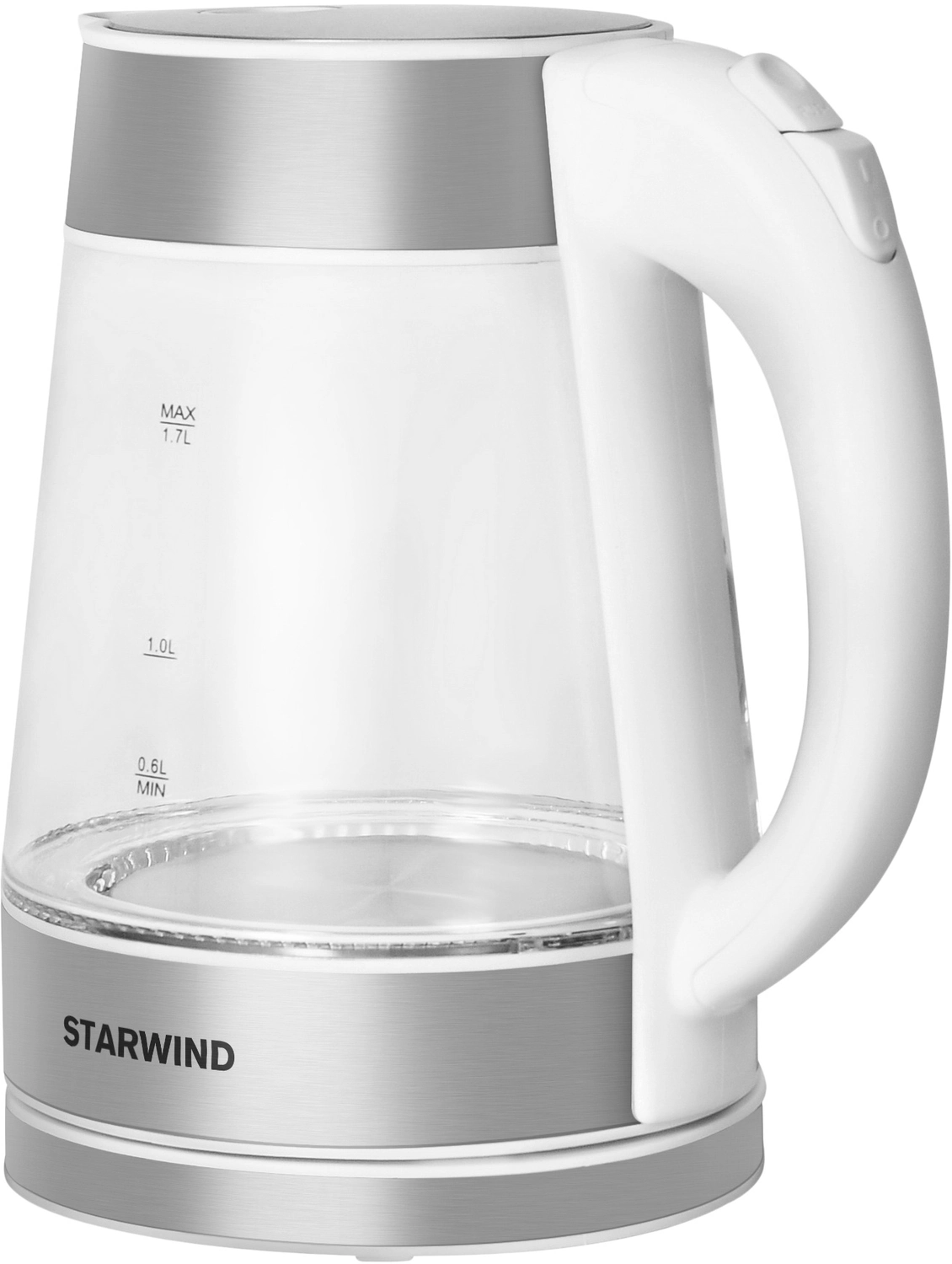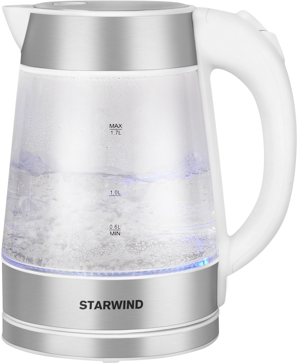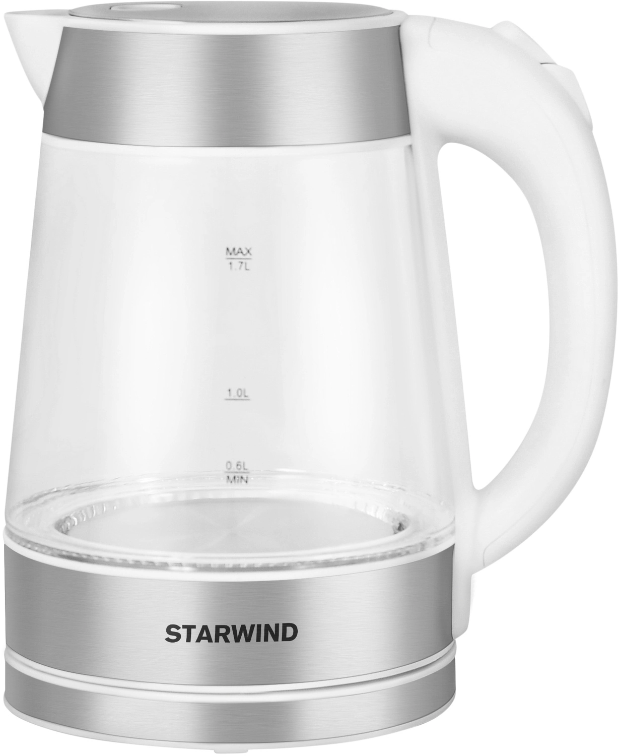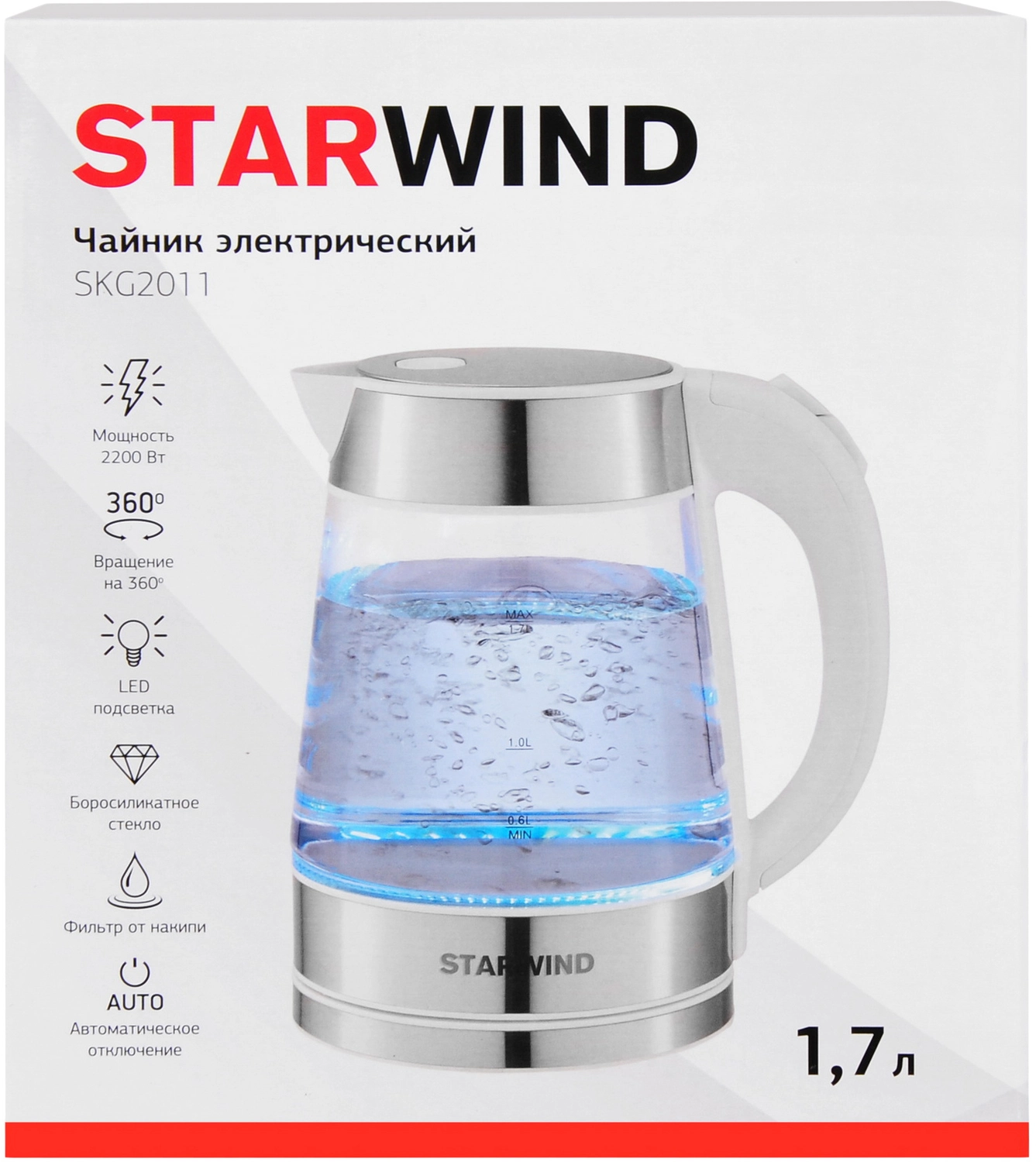 Чайник электрический Starwind SKG2011 1.7л. 2200Вт белый/ серебристый корпус: стекло/ металл/ пластик