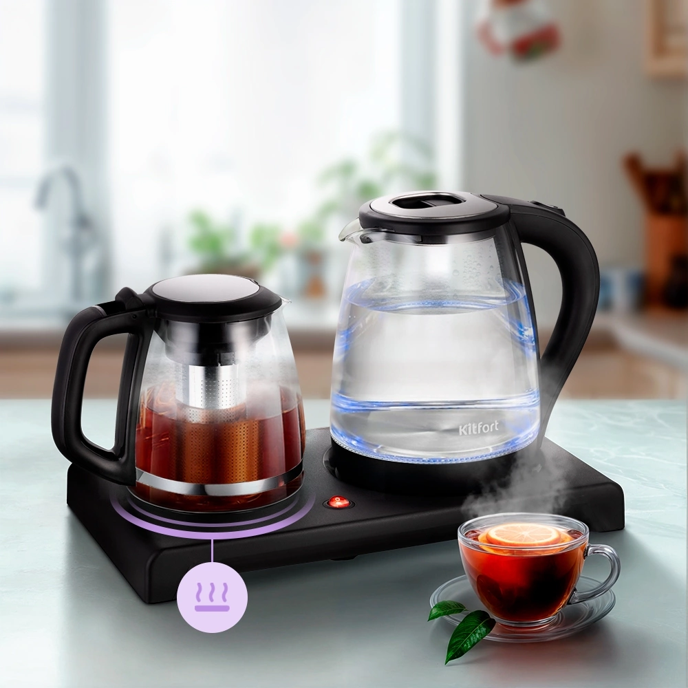 Стильный и функциональный чайный набор Kitfort КТ-6179 состоит из чайника ёмкостью 2 л, кувшина с фильтром для заварки ёмкостью 1, 2 л и базы. Набор поможет вам не только вскипятить воду, но и заварить чай или кофе.