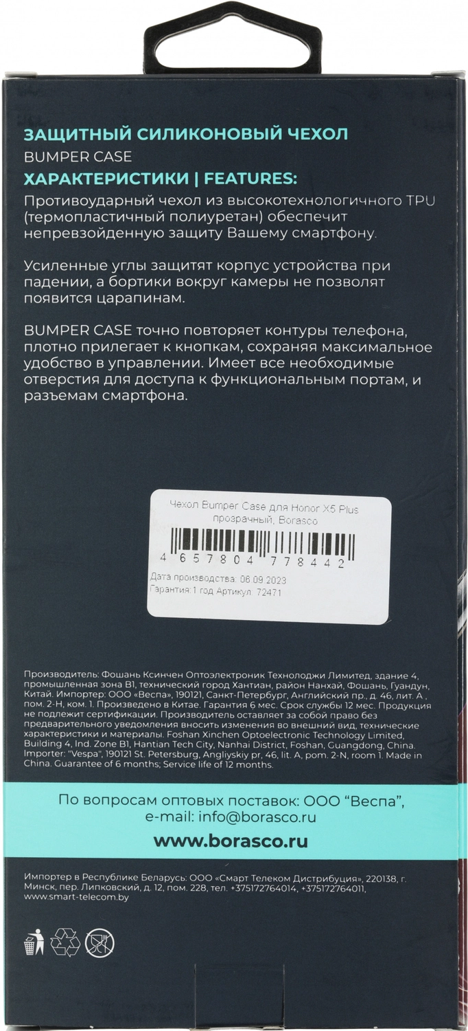 Чехол (клип-кейс) BoraSCO для Honor X5 Plus Bumper Case прозрачный (72471)