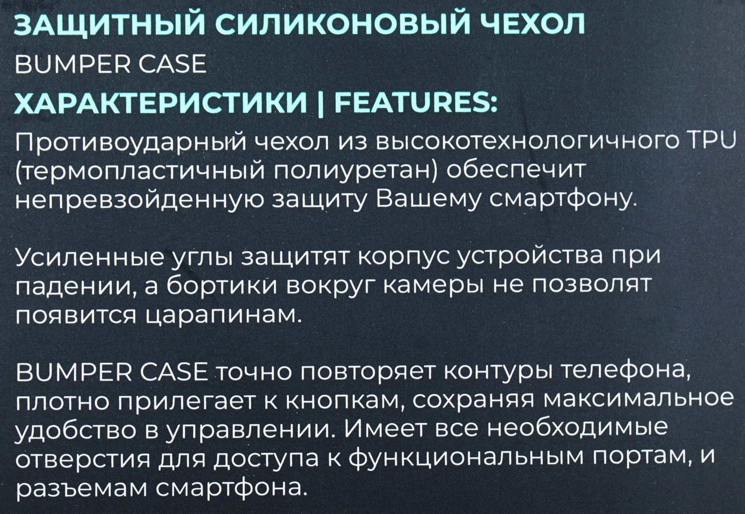 Прозрачный противоударный силиконовый чехол Bumper Case c усиленными углами и защитным бортом надёжно защитит корпус Вашего устройства от царапин, грязи и механических повреждений. Имеет все необходимые отверстия для доступа к функциональным портам и разъемам.