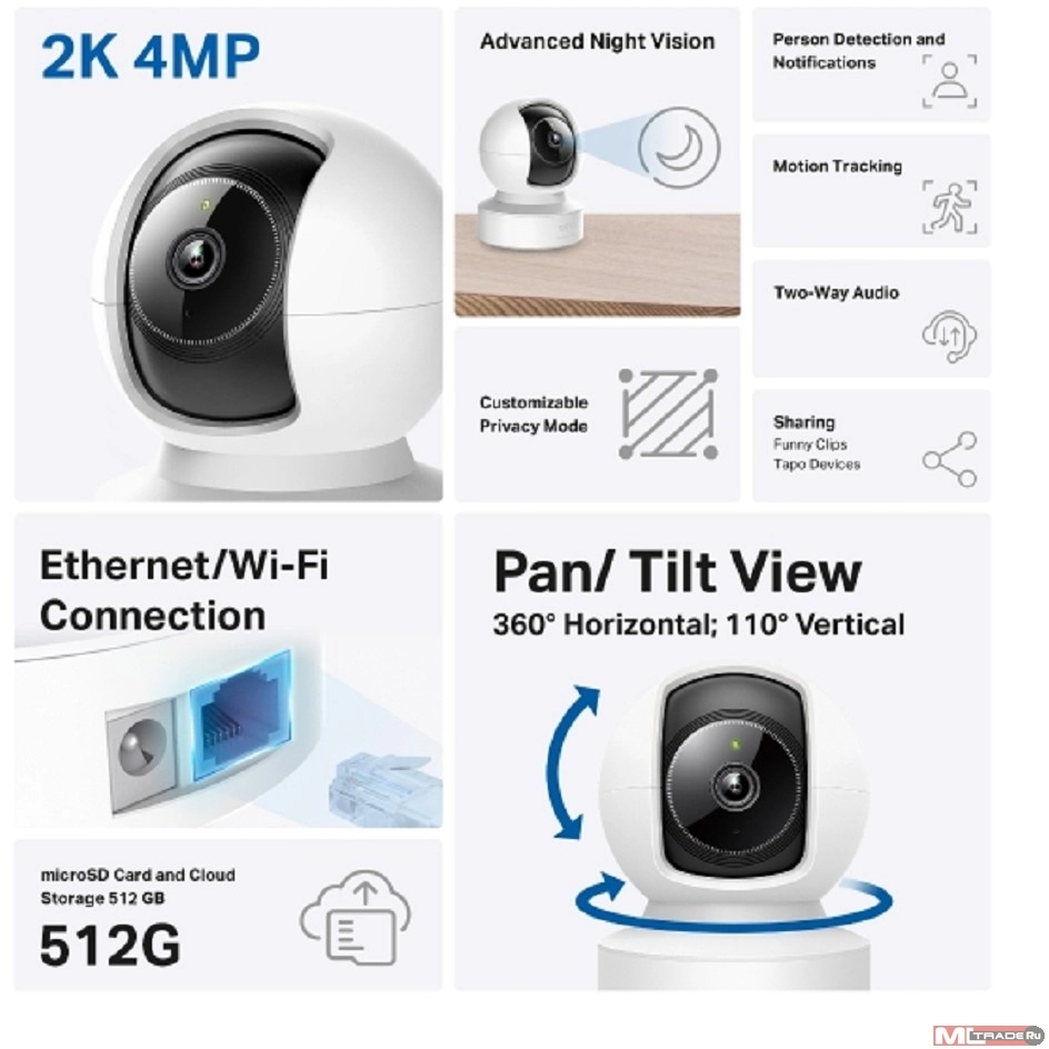Цифровая камера TP-Link Tapo C222 Поворотно-наклонная беспроводная облачная IP-камера с ИИ [TapoC222]