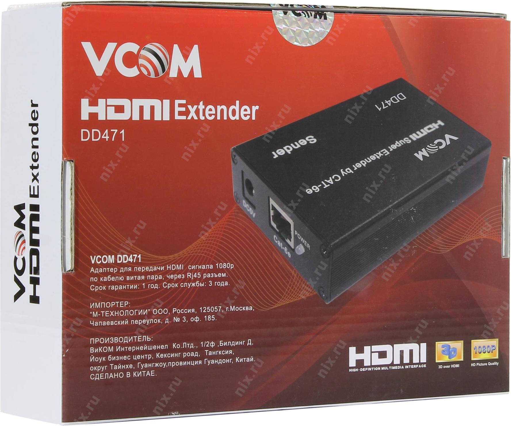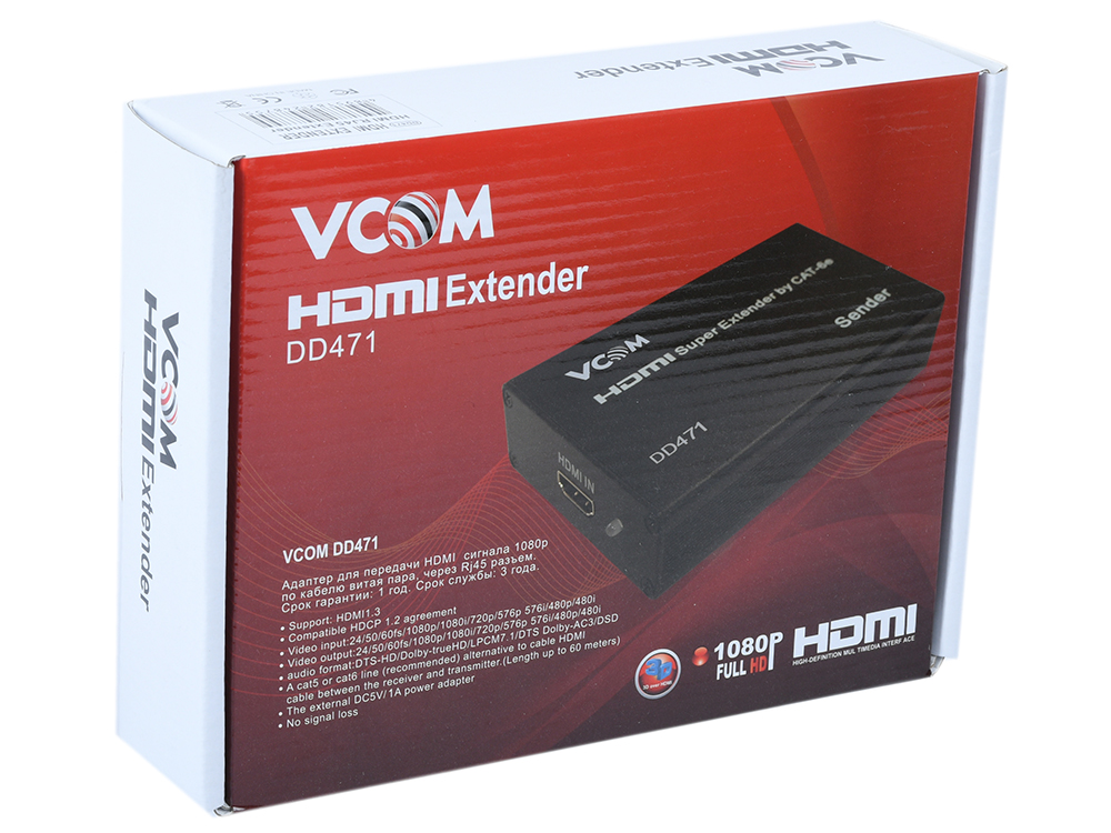 Переходник VCOM DD471 Удлинитель HDMI по витой паре до 60м extender VCOM <DD471> +2б.п.
