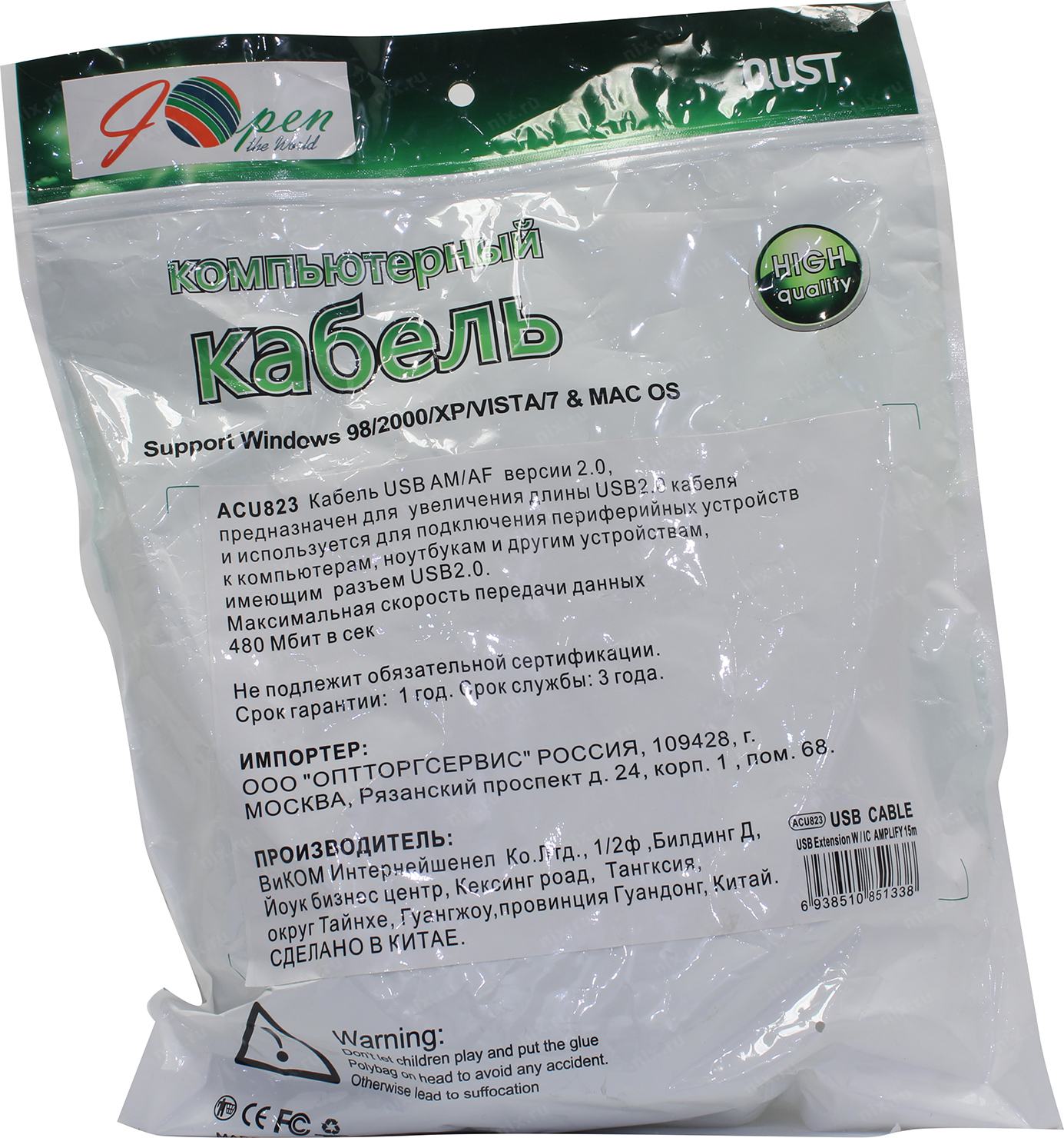 Кабель USB2 AM-AF 15M ACU823-15M AOPEN