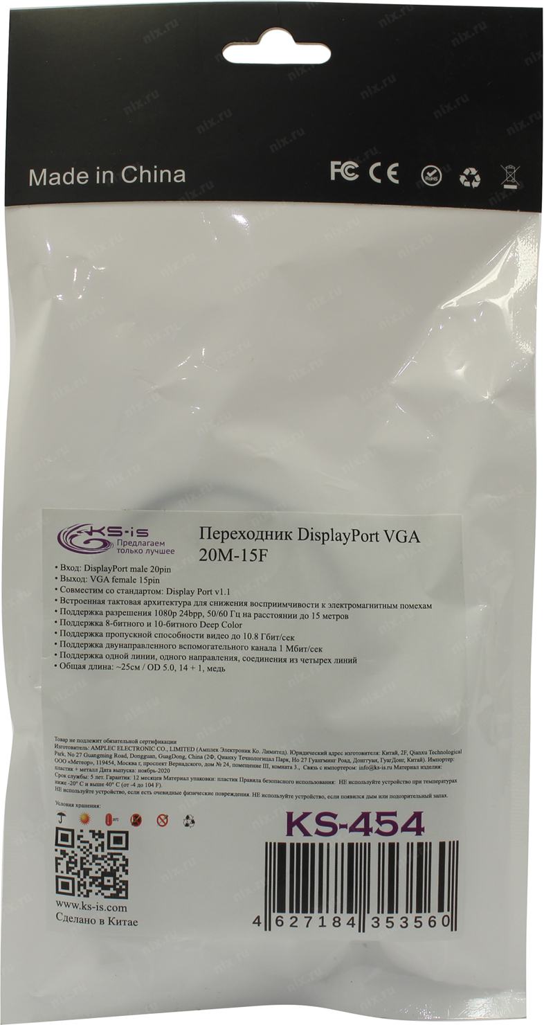 KS-is <KS-454> Кабель-адаптер DisplayPort (M)--> VGA(15F)