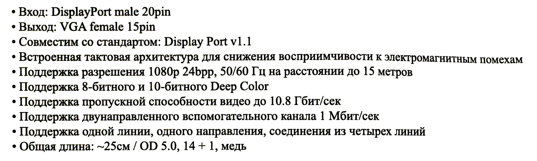 Переходник для подключения монитора или телевизора с интерфейсом VGA к видеокарте с выходом DisplayPort