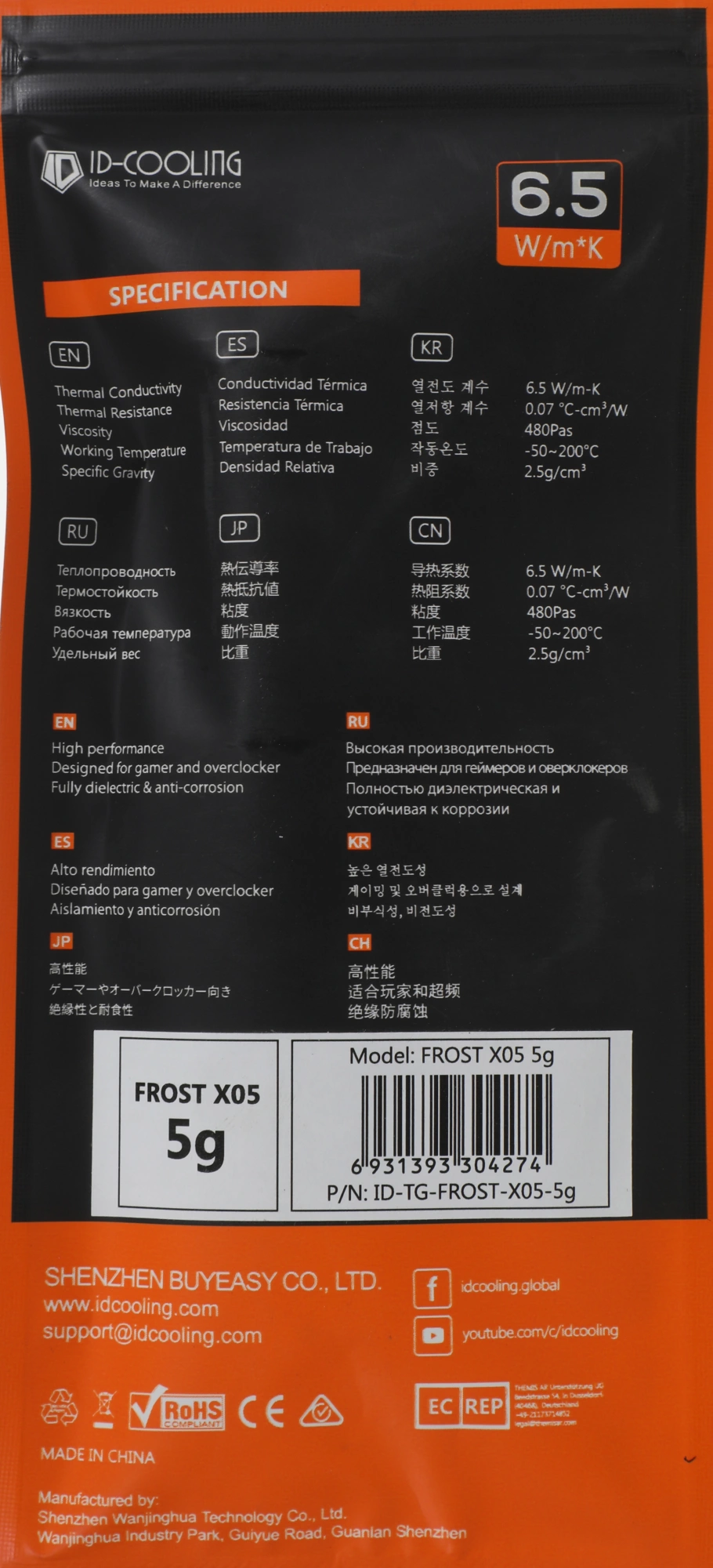 Термопаста ID-COOLING FROST X05 5g шприц, 5грамм [FROSTX055G]