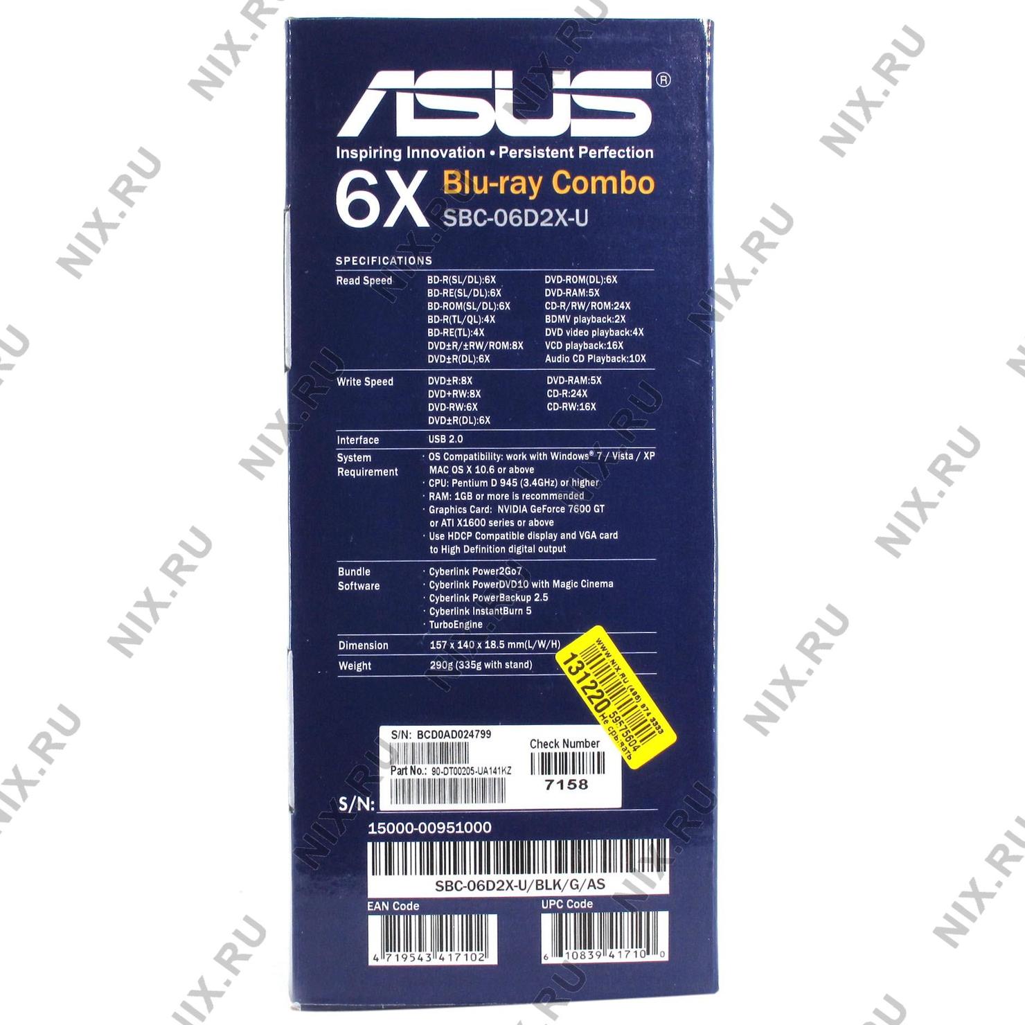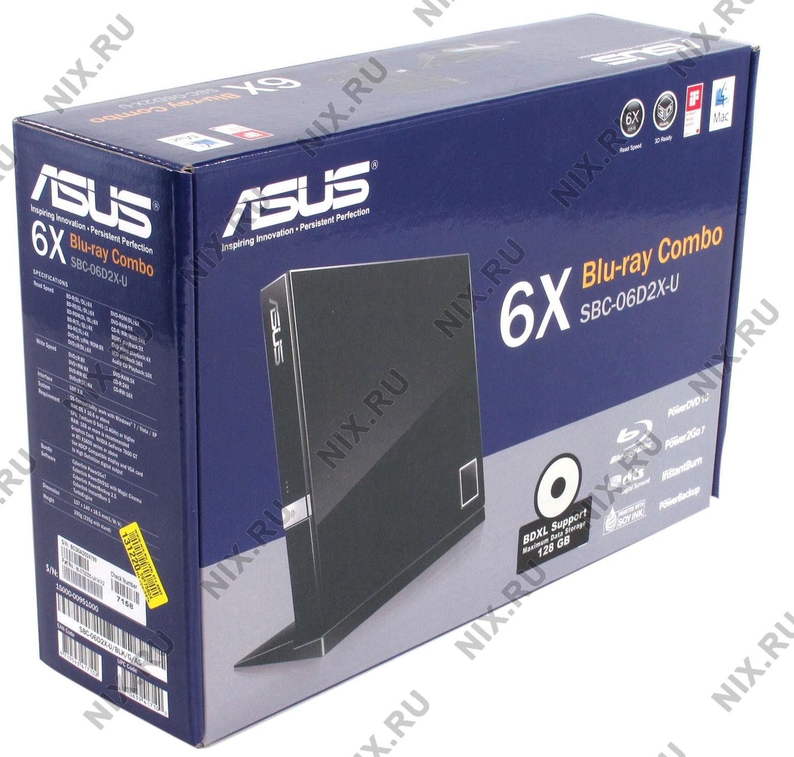 Привод Blu-Ray Asus SBC-06D2X-U/BLK/G/AS черный USB slim внешний RTL