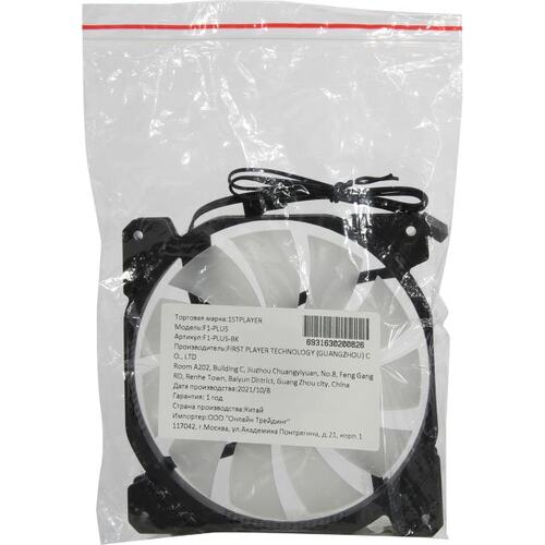 Вентиляторы 1STPLAYER F1-PLUS Black / 140mm, LED 5-color, 1000rpm, 3pin / F1-PLUS-BK / bulk