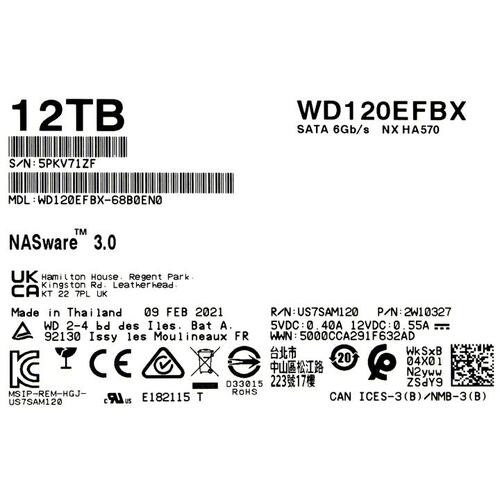 Жесткий диск WD NAS Edition 12TB 3.5" 7200 RPM 256MB SATA-III (WD120EFBX)