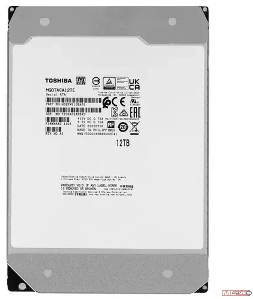 Жесткий диск 12TB Toshiba (MG07ACA12TE) (SATA-III, 7200RPM, 256MB buffer, 3.5 ")