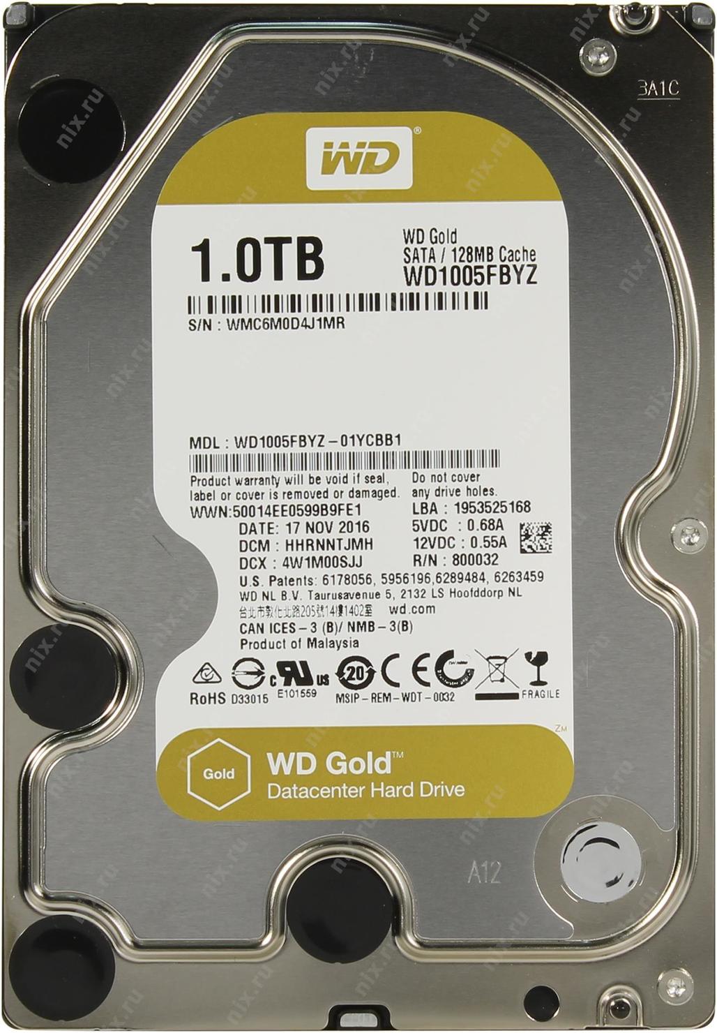 Жесткий диск SATA 1TB 7200RPM 6GB/S 128MB GOLD WD1005FBYZ WDC | НИКС Екатеринбург