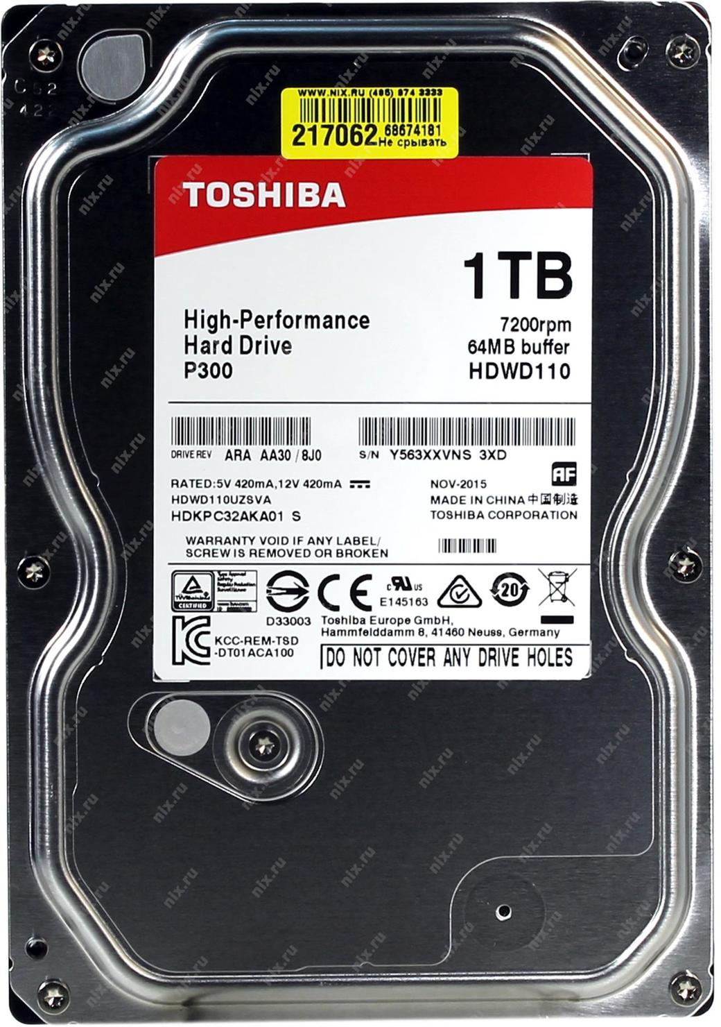 Жесткий диск 1TB Toshiba (HDWD110UZSVA) P300 (SATA 3, 7200 rpm, 64Mb buffer, 3.5")