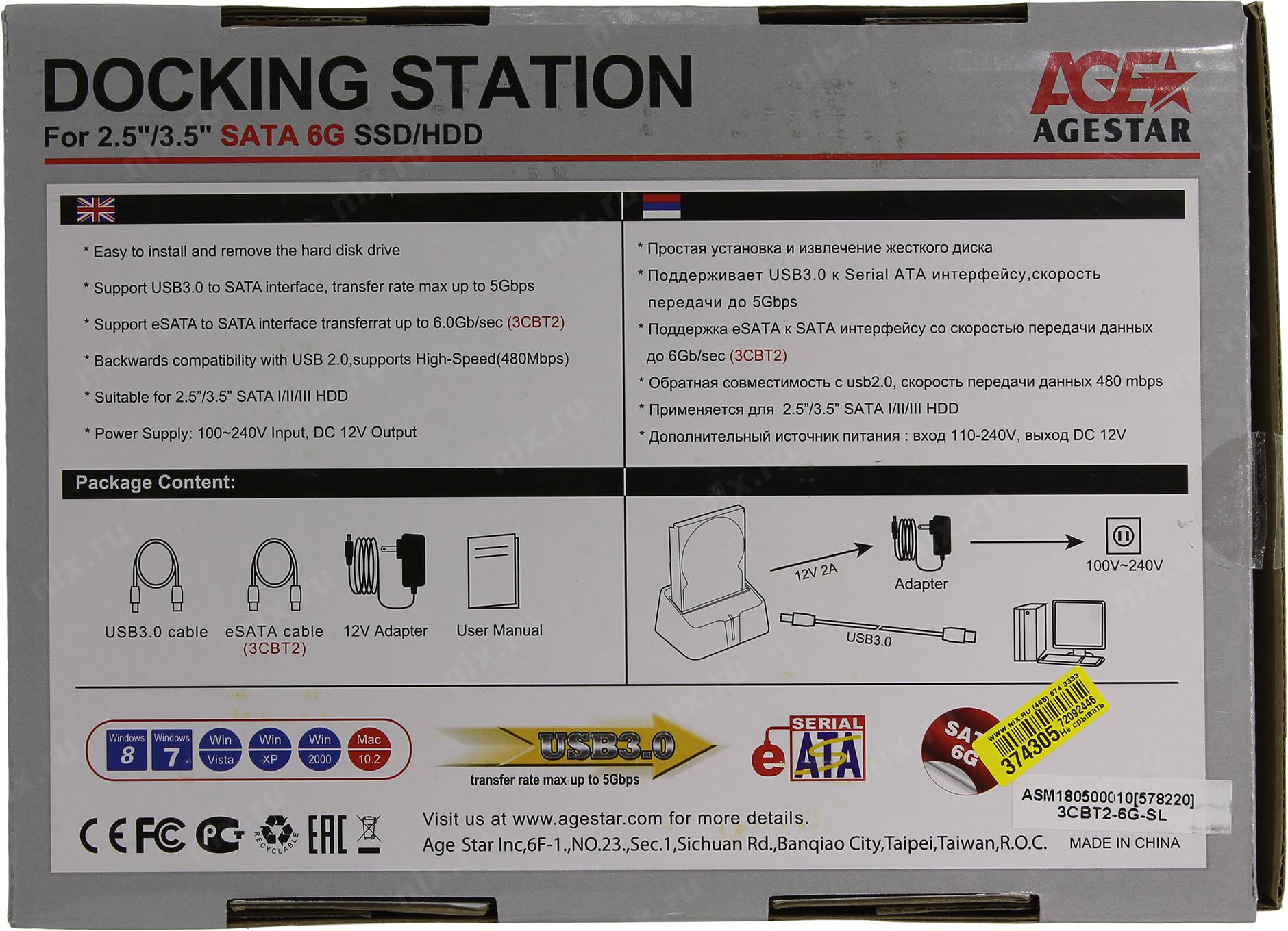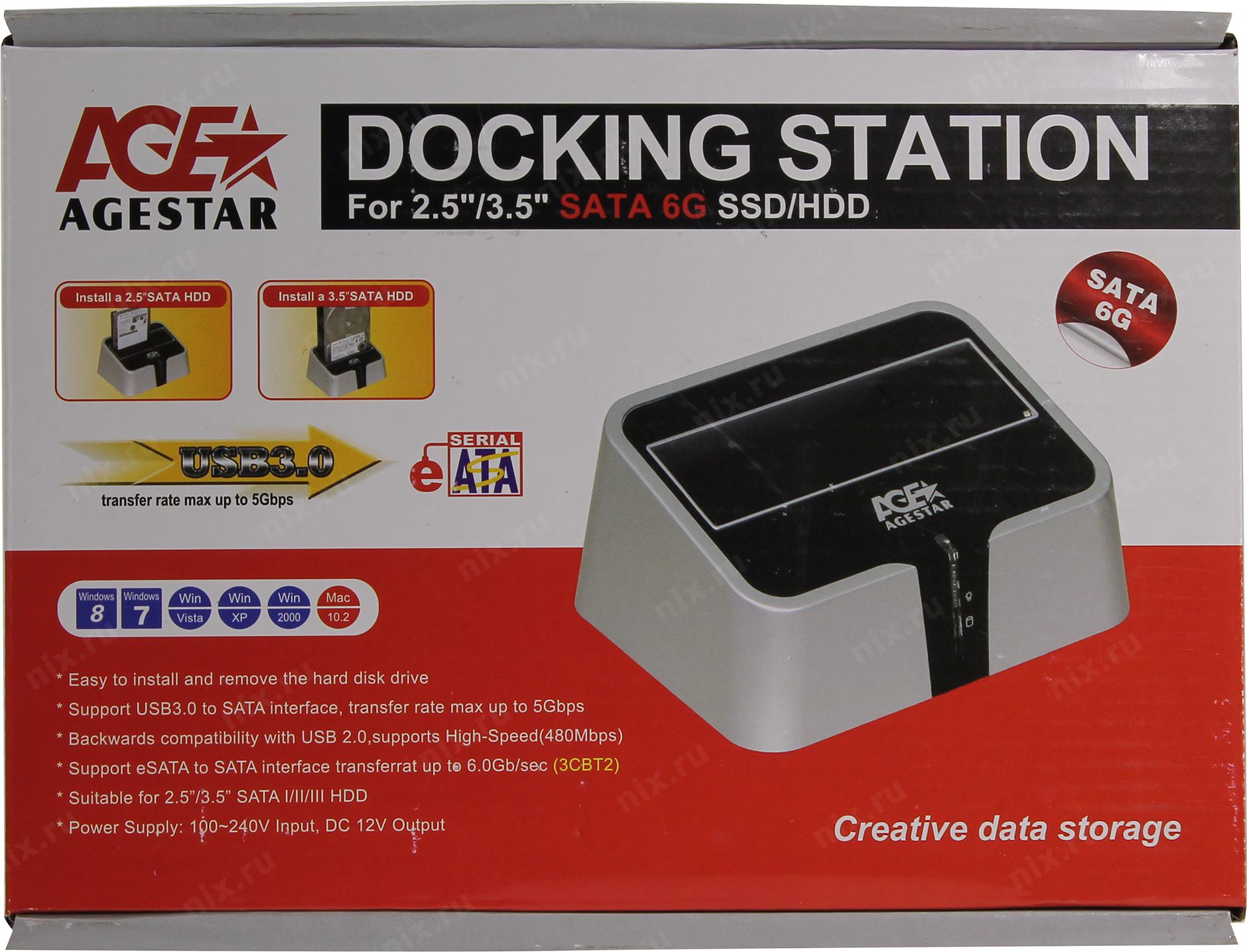 Мобильное шасси AgeStar <3CBT2-White> SATA Docking Station (для внешнего подключения 3.5"/2.5"SATA устройств, USB3.0/eSATA)