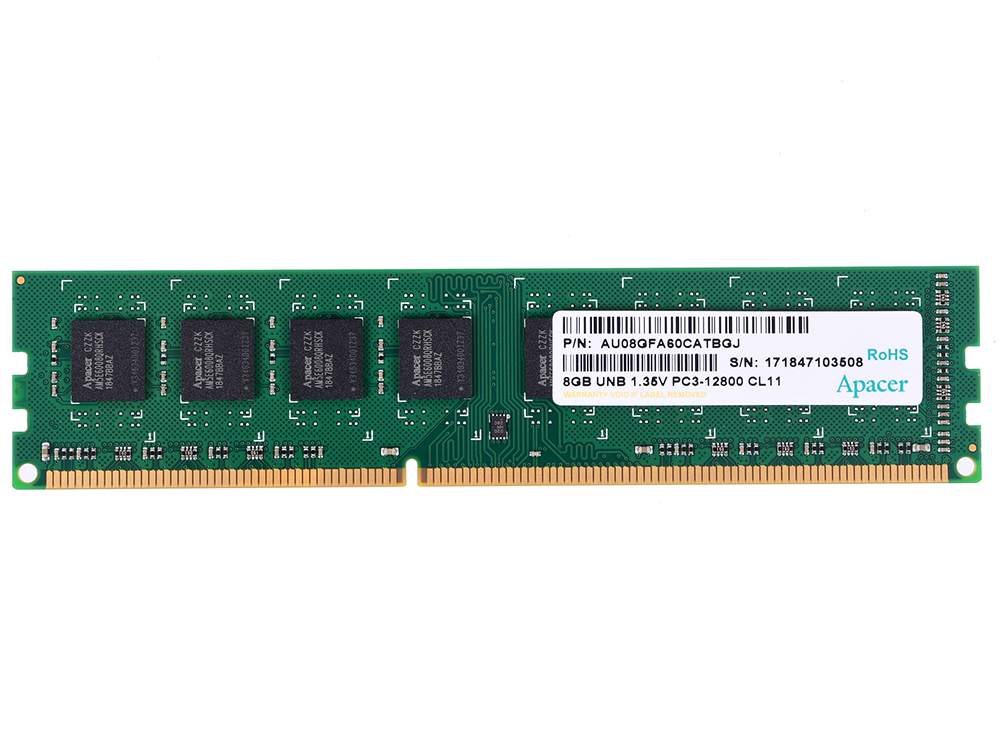 Модуль памяти Apacer DDR3 DIMM 8GB (PC3-12800) 1600MHz AU08GFA60CATBGJ 1.35V (DG.08G2K.KAM) | НИКС Екатеринбург