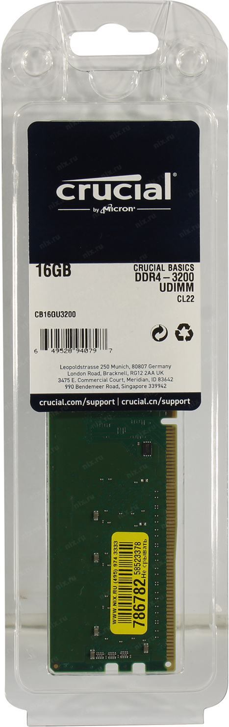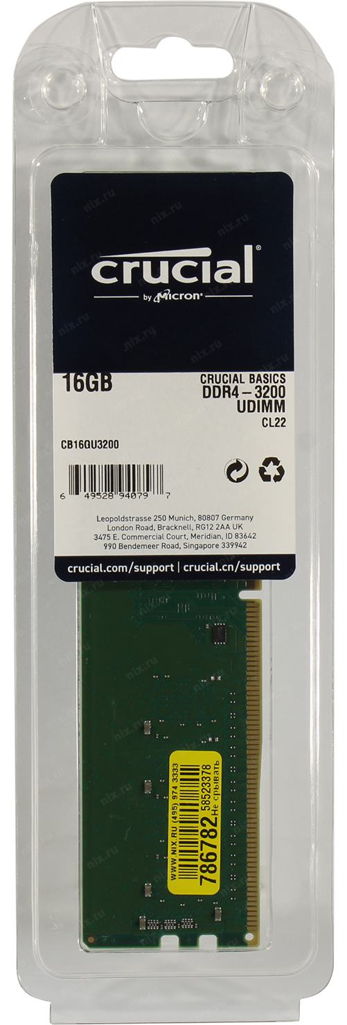Модуль памяти Crucial DDR4 DIMM 16GB CB16GU3200 PC4-25600, 3200MHz