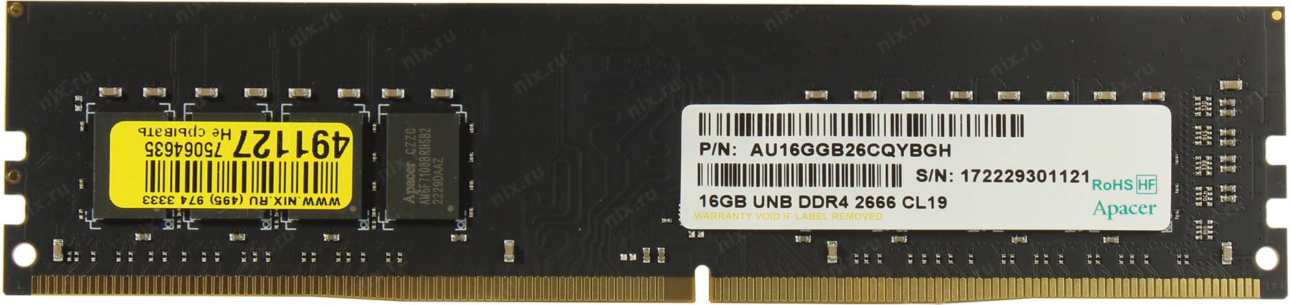 Apacer DDR4 16GB 2666MHz UDIMM (PC4-21300) CL19 1.2V (Retail) 1024*8 3 years (AU16GGB26CQYBGH / EL.16G2V.GNH)