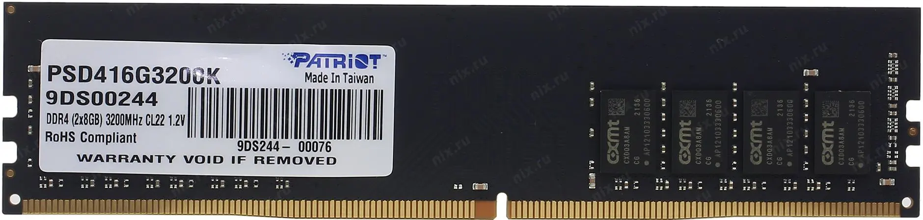 Оперативаня память Patriot SL DDR4 DIMM 16GB 3200MHz CL22 KIT 2*8GB 22-22-22-52 1.2V <PSD416G3200K>