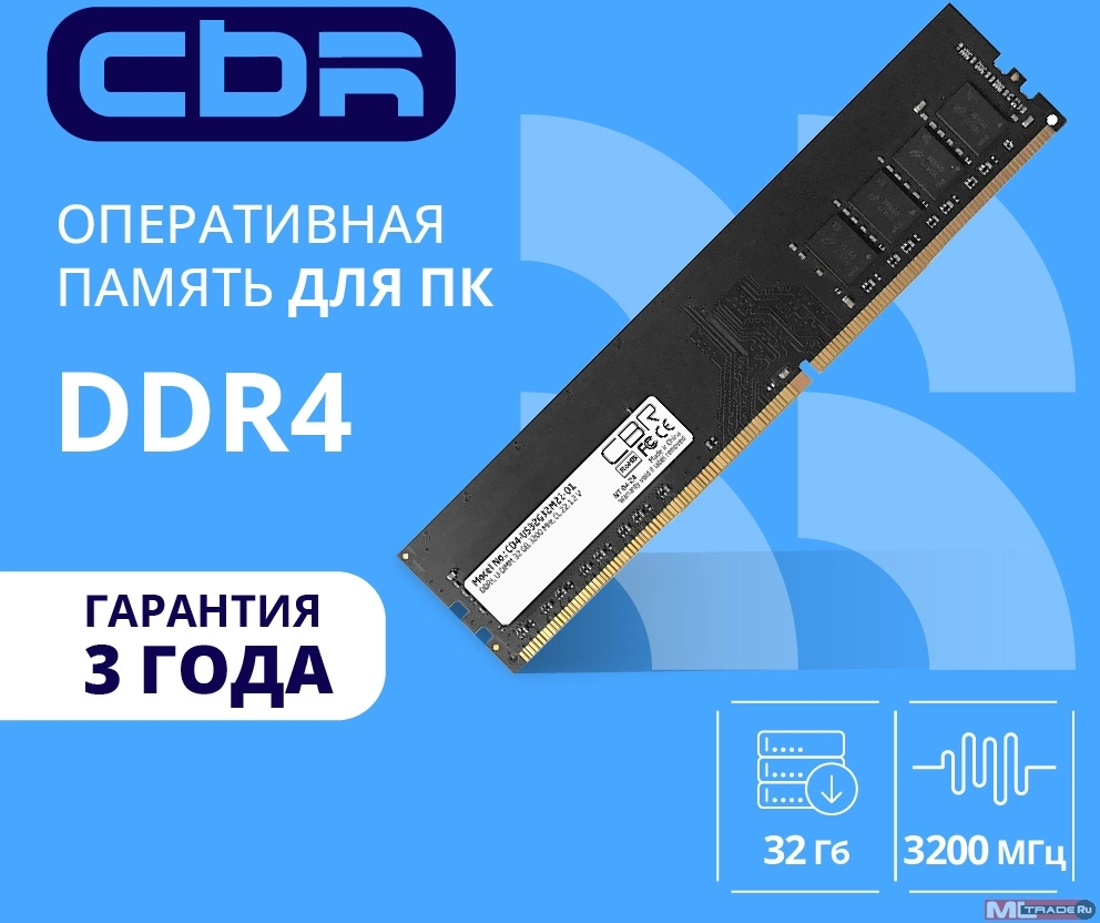 Модуль памяти CBR DDR4 DIMM (UDIMM) 32GB CD4-US32G32M22-01 PC4-25600, 3200MHz, CL22, 1.2V