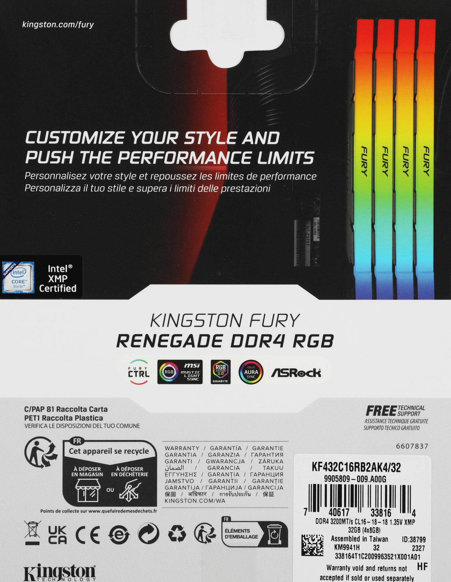 32 Fury Renegade RGB RTL Gaming PC4-28800 CL16 DIMM 288-pin 1.35В single rank с радиатором Ret