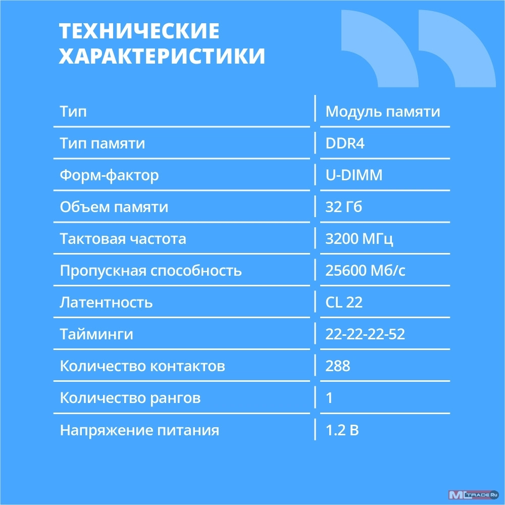 Модуль памяти Crucial CT32G4DFD832A 32GB DDR4 3200 DIMM Non-ECC, CL22, 1.2V, 2Rx8, RTL(100) (822475)