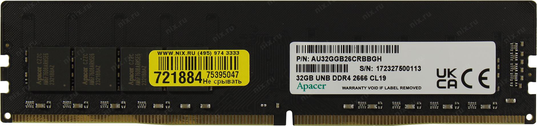 Модуль памяти Apacer DDR4 DIMM 32GB EL.32G2V.PRH PC4-21300, 2666MHz