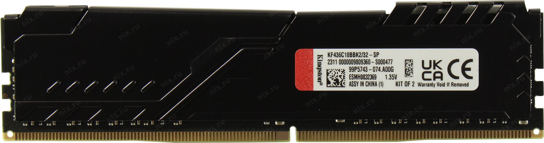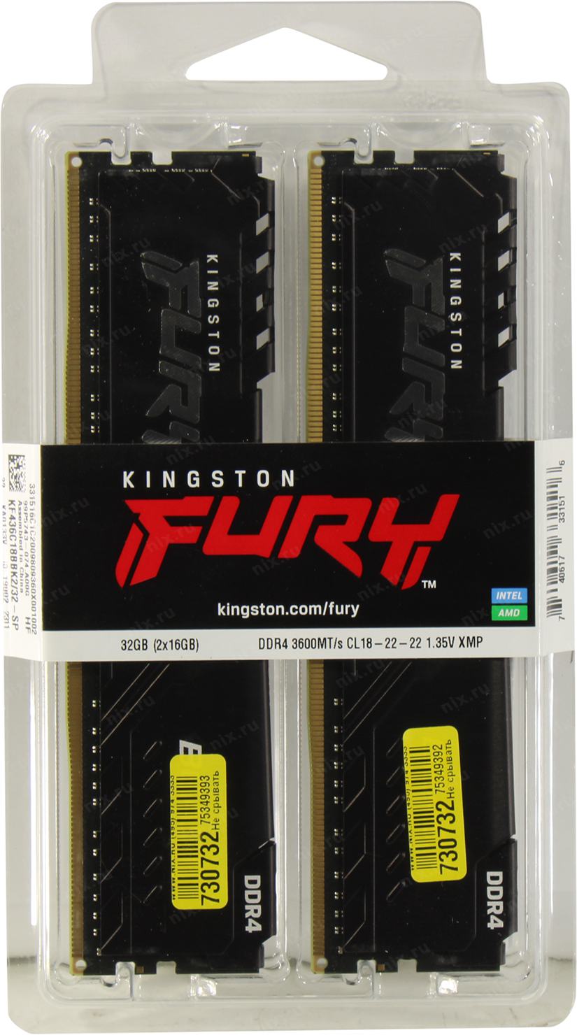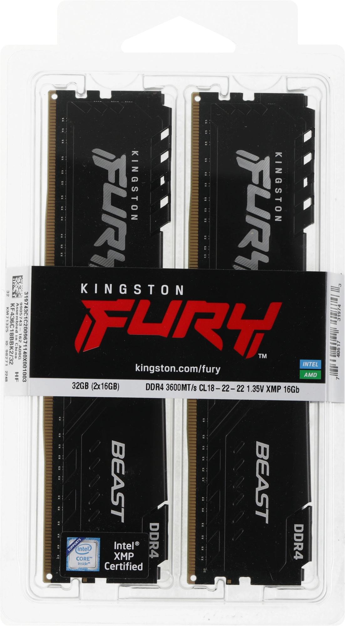 Модуль памяти Kingston Fury Beast <KF436C18BBK2/32> DDR4 DIMM 32Gb KIT 2*16Gb<PC4-28800> CL18