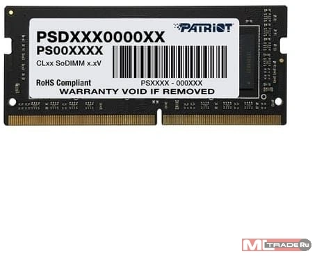 Оперативная память 4GB Patriot Signature PSD44G266681S DDR4, 2666 MHz, 21300 Мб/с, CL19, 1.2 В (SO-DIMM)