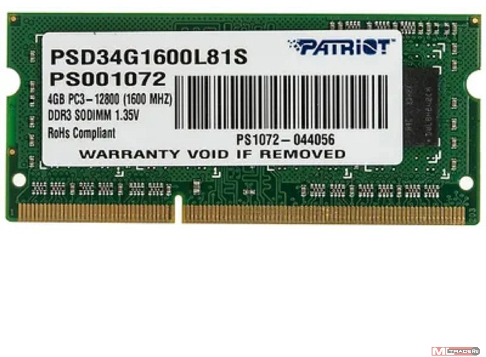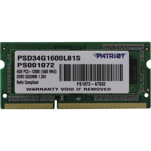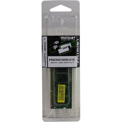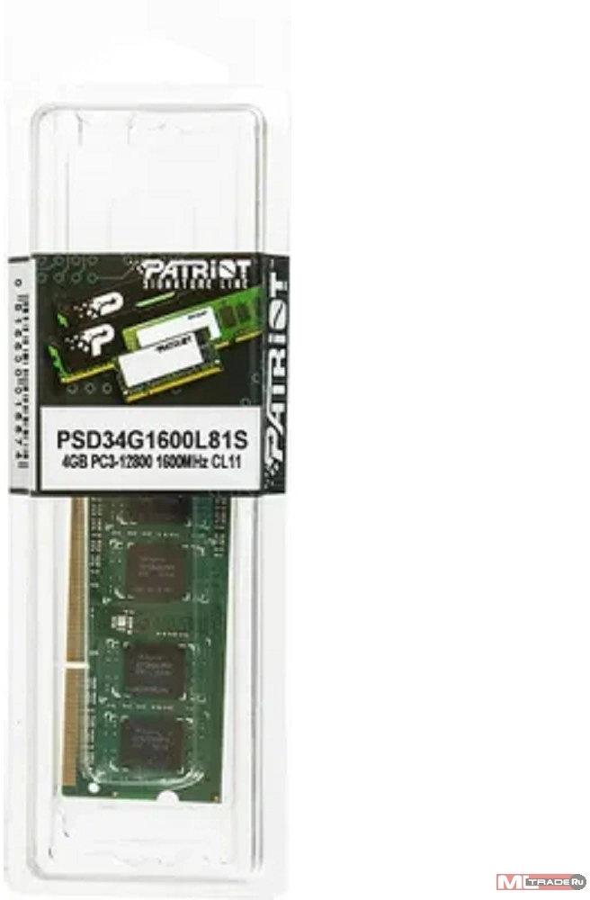 Оперативная память Patriot SL DDR3 4GB 1600MHz SO-DIMM SINGLE 1*4GB CL11 11-11-11 1.35V <PSD34G1600L81S>