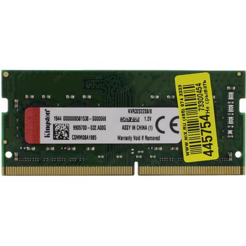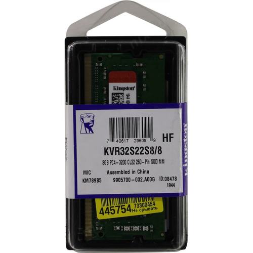 Модуль памяти Kingston KVR32S22S8/8 8GB DDR4 3200 SO DIMM Non-ECC, CL22, 1.2V, 1Rx8, RTL (296099)