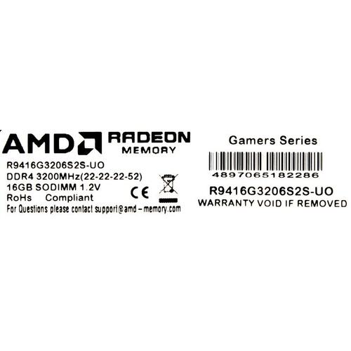 Модуль памяти AMD Radeon R9 Gamers Series Black Gaming Memory R9416G3206S2S-UO 16GB DDR4 3200 SO DIMM Non-ECC, CL16, 1.2V, Bulk (182286) (50)