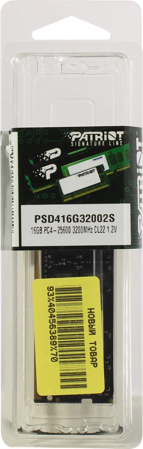 Оперативная память Patriot SL DDR4 16GB 3200MHz SO-DIMM SINGLE 1*16GB CL22 22-22-22-52 1.2V <PSD416G32002S> | НИКС Екатеринбург