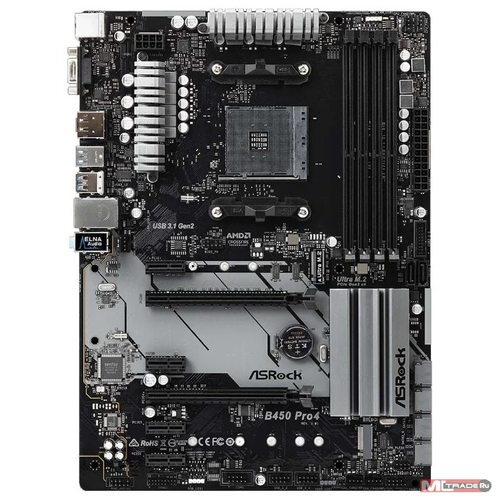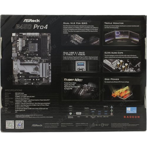 Материнская плата Asrock B450 PRO4 Soc-AM4 AMD B450 4xDDR4 ATX AC`97 8ch(7.1) GbLAN RAID+VGA+HDMI+DP | НИКС Екатеринбург
