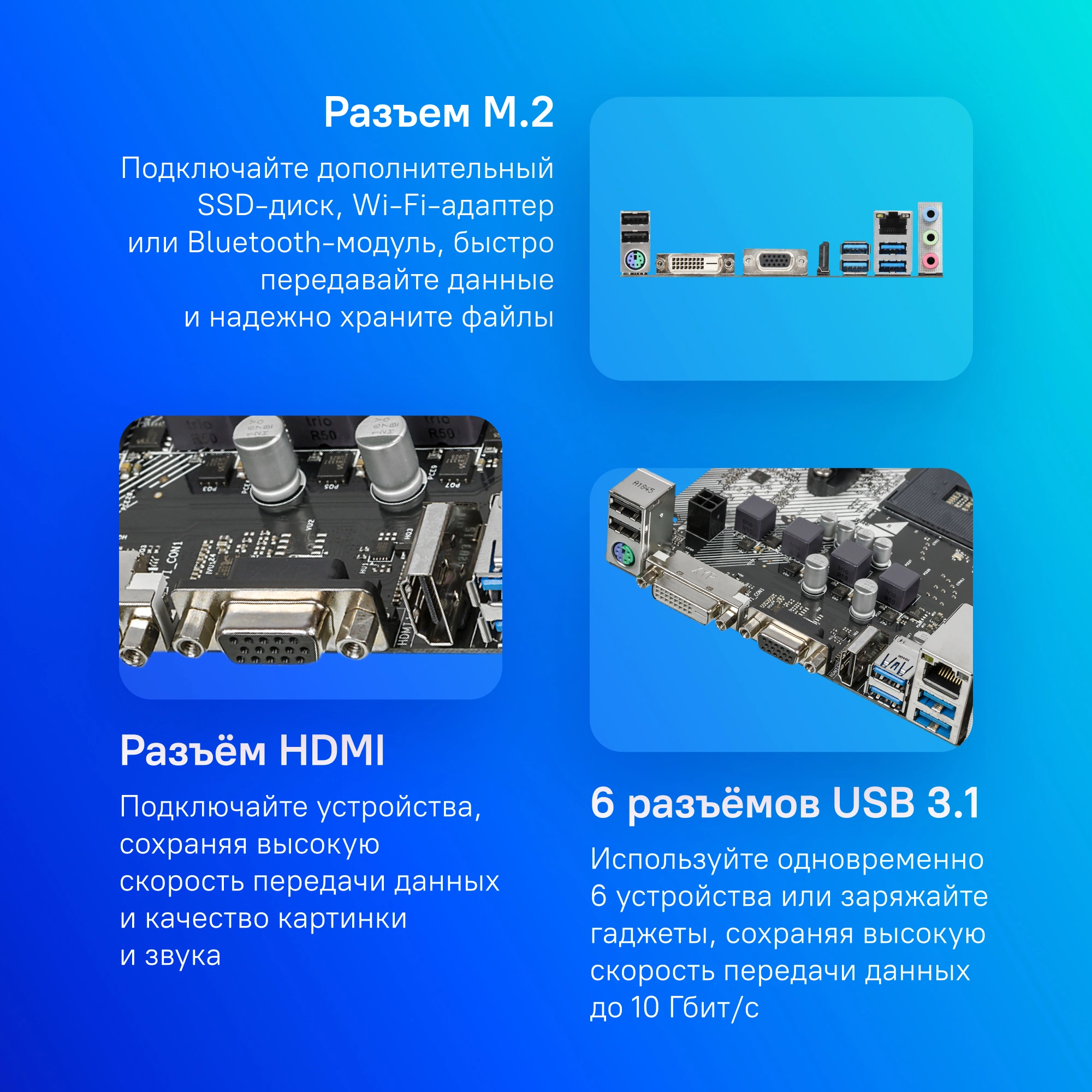 2x USB 3.0 (USB 3.1 Gen1), 4x USB 2.0 возможно подключить на корпусе или через планку портов
