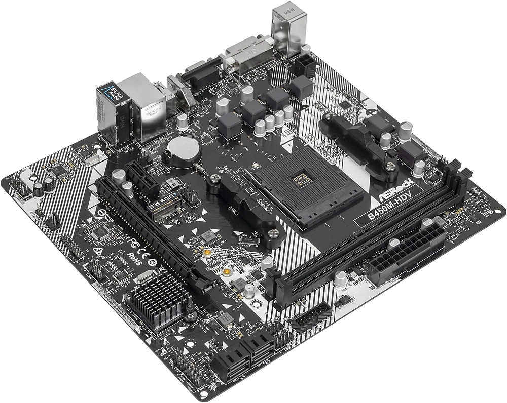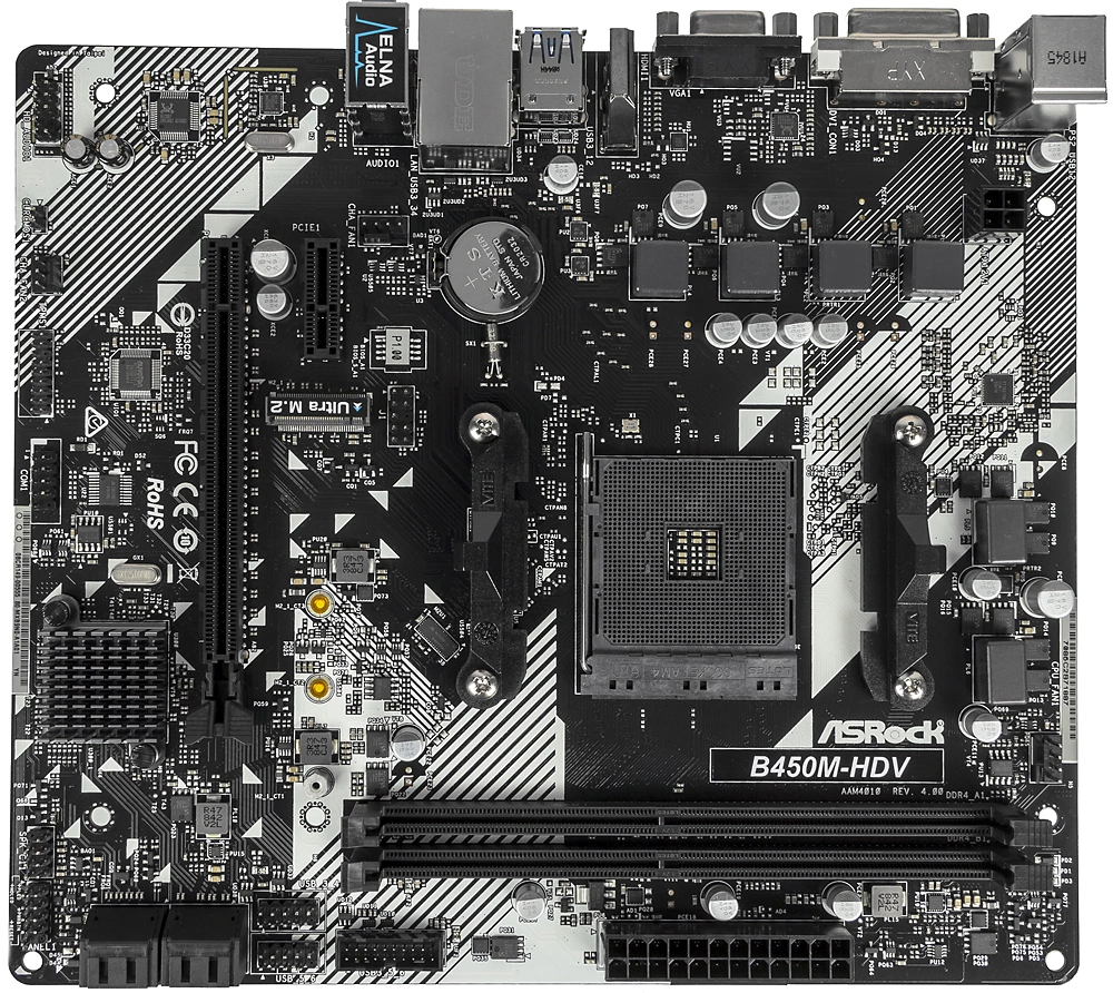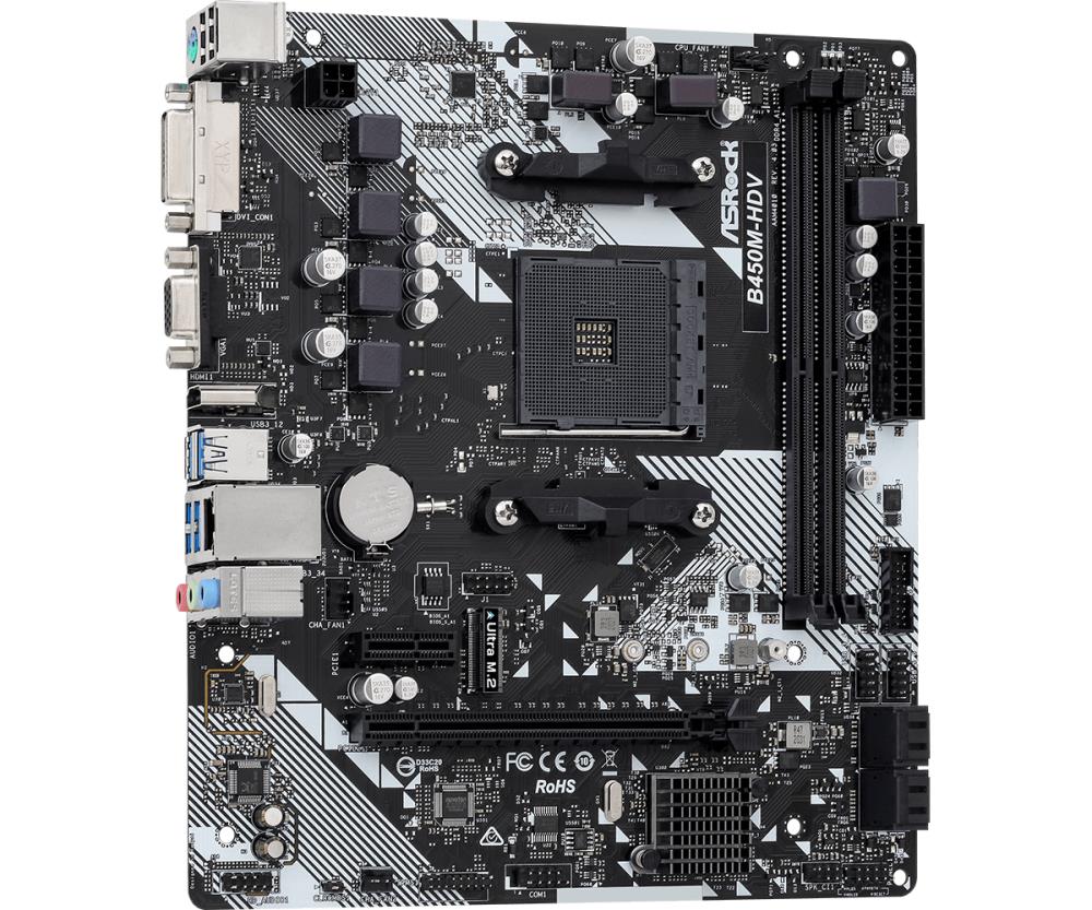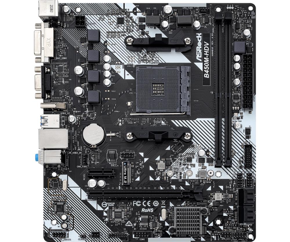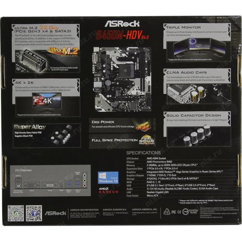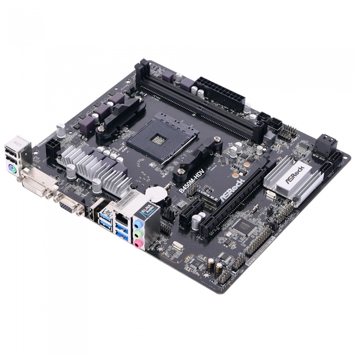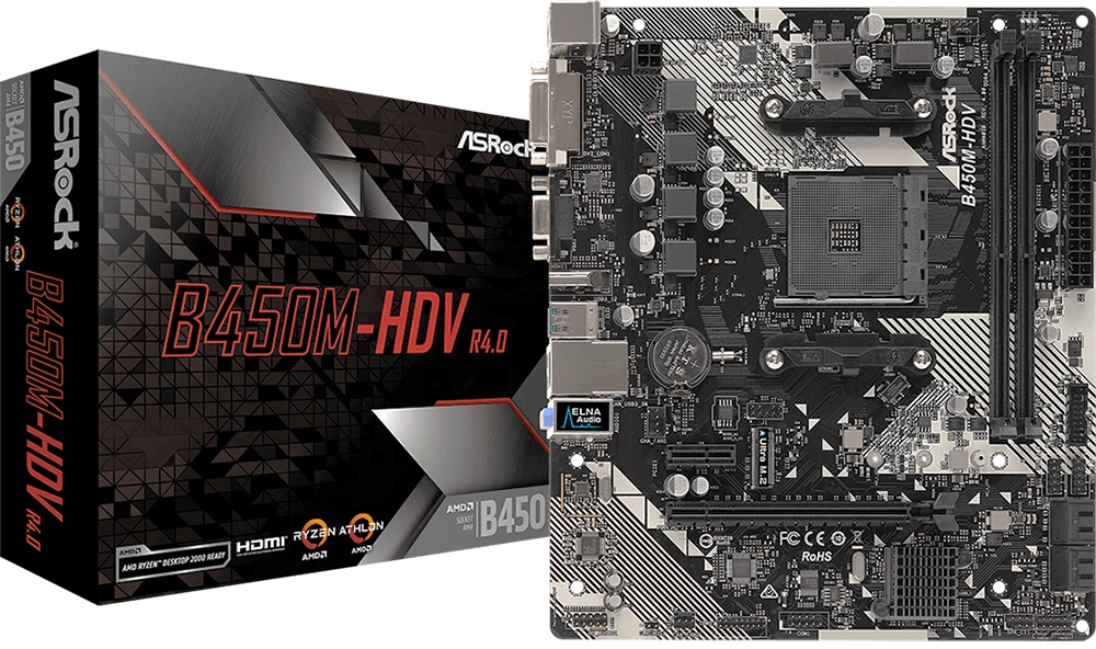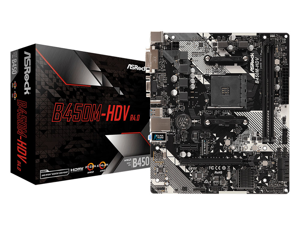 Материнская плата Asrock B450M-HDV R4.0 Soc-AM4 AMD B450 2xDDR4 mATX AC`97 8ch(7.1) GbLAN RAID+VGA+DVI+HDMI | НИКС Екатеринбург