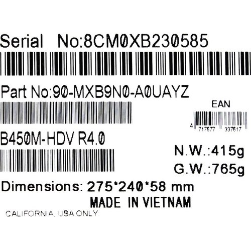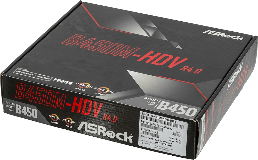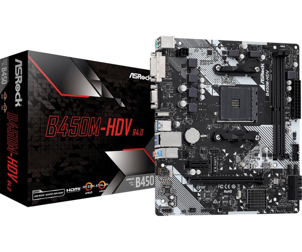 Материнская плата Asrock B450M-HDV R4.0 Soc-AM4 AMD B450 2xDDR4 mATX AC`97 8ch(7.1) GbLAN RAID+VGA+DVI+HDMI