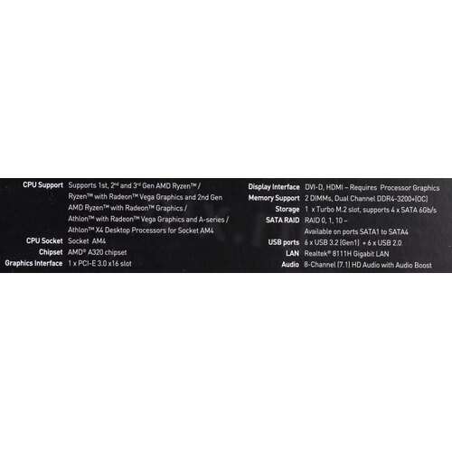 AMD серии Ryzen 9 3xxx, Ryzen 7 3xxx, Ryzen 7 2xxx, Ryzen 7 1xxx, Ryzen 5 3xxx, Ryzen 5 2xxx, Ryzen 5 1xxx, Ryzen 3 2xxx, Ryzen 3 1xxx, APU A12, APU A10, APU A8, APU A6, Athlon X4;;APU A12/A10/A8/A6 и Athlon X4 могут быть исключены из поддержки на момент продажи (с последней версией BIOS) . Просьба уточнить более актуальный список совместимости на сайте производителя перед покупкой