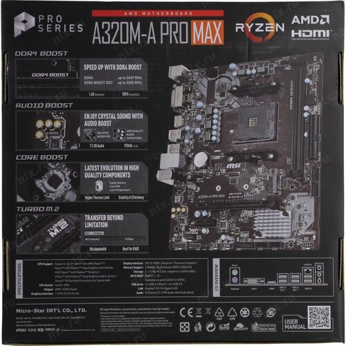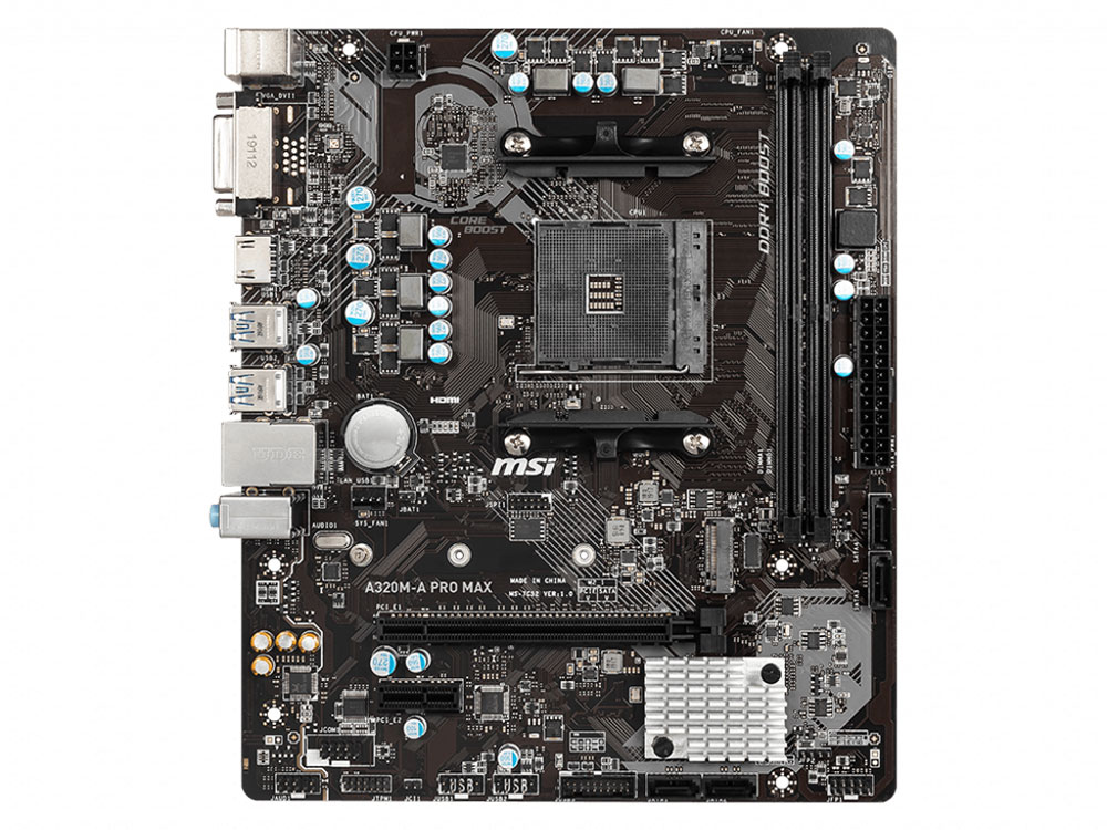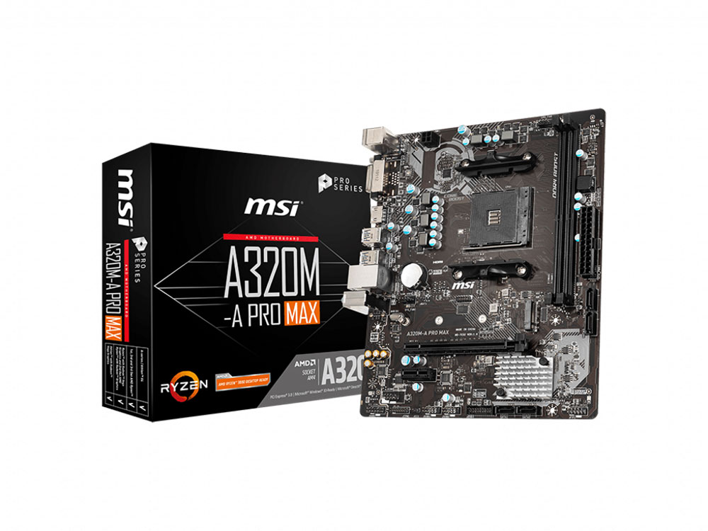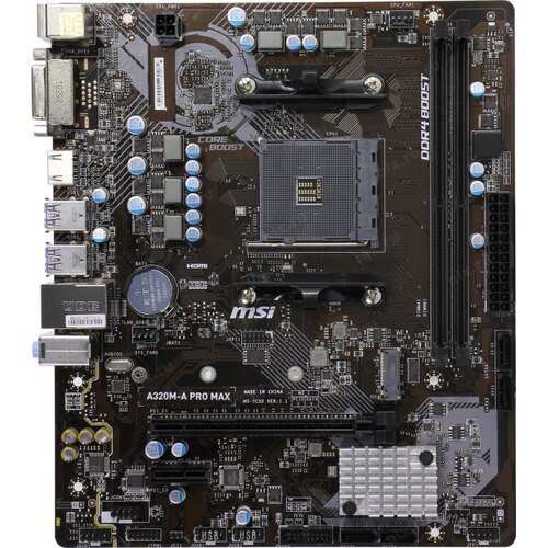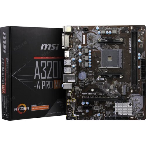Материнская плата MSI A320M-A PRO MAX Soc-AM4 AMD A320 2xDDR4 mATX AC`97 8ch(7.1) GbLAN RAID+DVI+HDMI | НИКС Екатеринбург