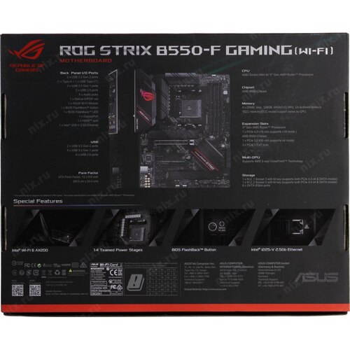 Материнская плата Asus ROG STRIX B550-F GAMING(WI-FI) Soc-AM4 AMD B550 4xDDR4 ATX AC`97 8ch(7.1) 2.5Gg RAID+HDMI+DP | НИКС Екатеринбург