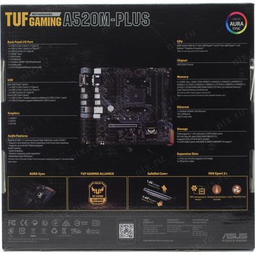 Материнская плата Asus TUF GAMING A520M-PLUS Soc-AM4 AMD A520 4xDDR4 mATX AC`97 8ch(7.1) GbLAN RAID+VGA+DVI+HDMI | НИКС Екатеринбург