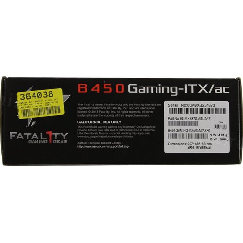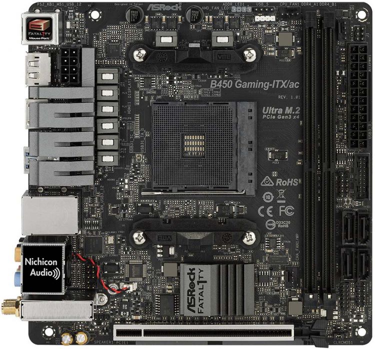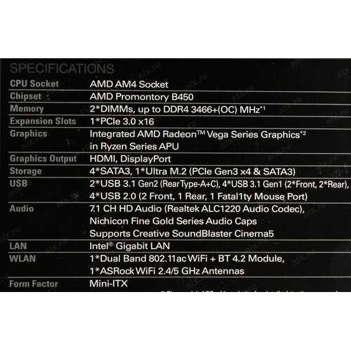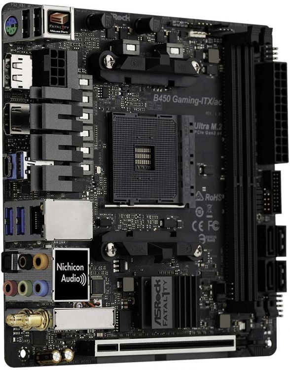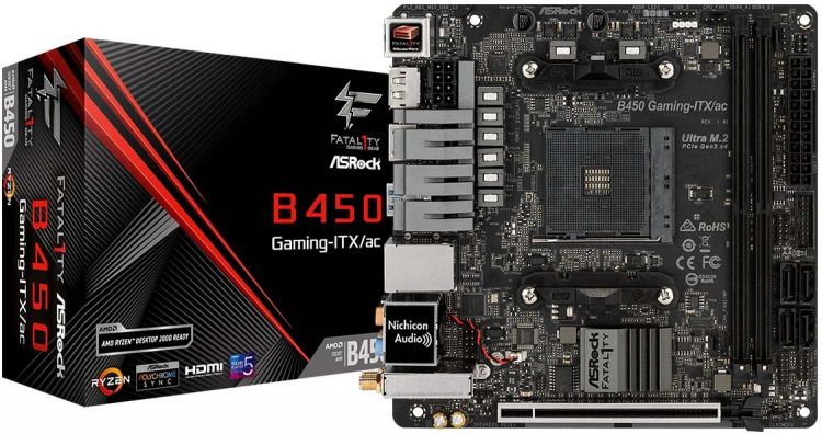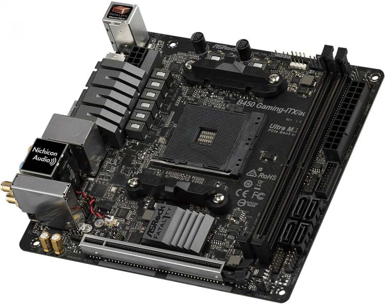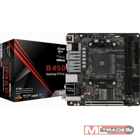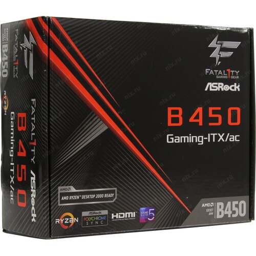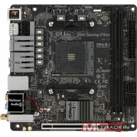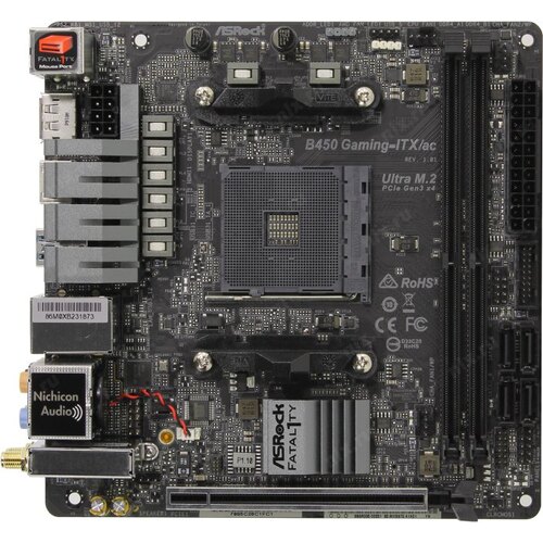 Материнская плата Asrock B450 GAMING-ITX/AC Soc-AM4 AMD B450 2xDDR4 mini-ITX AC`97 8ch(7.1) GbLAN RAID+HDMI+DP